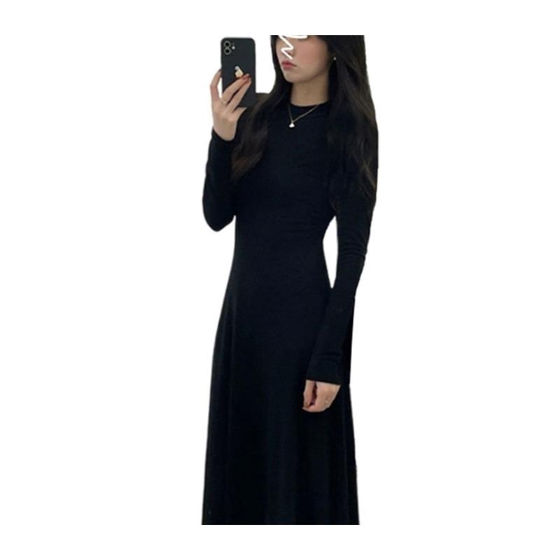 清冷富家千金穿搭内搭针织毛衣打底裙法式赫本风黑色长袖连衣裙女