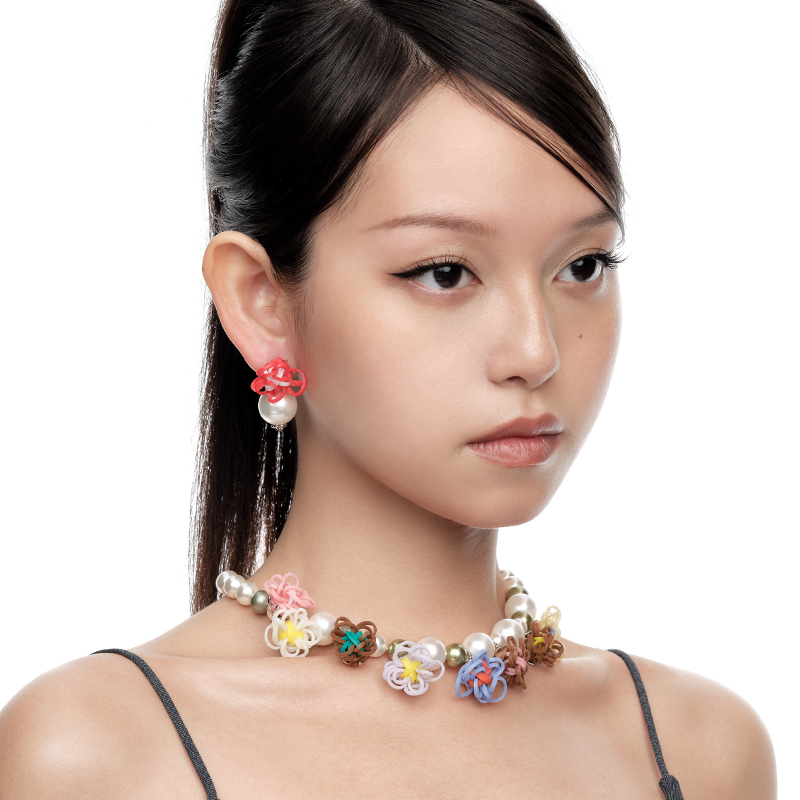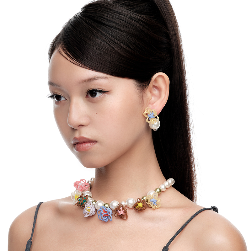 YVMIN尤目x SHUSHUTONG 橡皮筋花珍珠耳钉耳环生日礼物新品