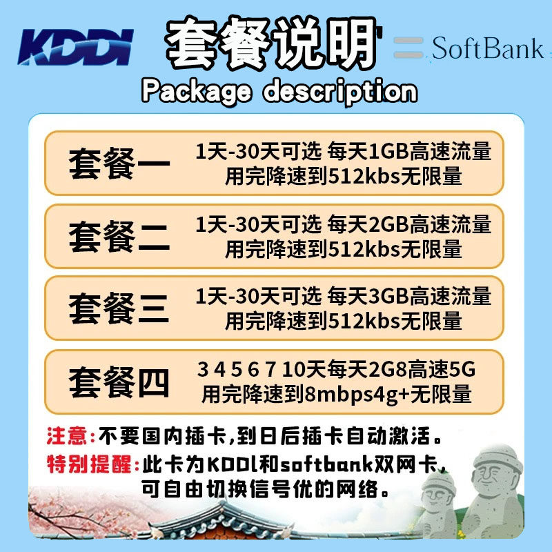 esim日本电话卡softbank无限流量5G高速网络东京大阪冲绳旅游热点