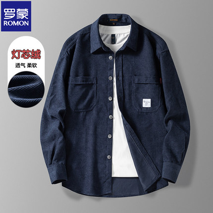 罗蒙秋冬灯芯绒衬衣长袖衬衫