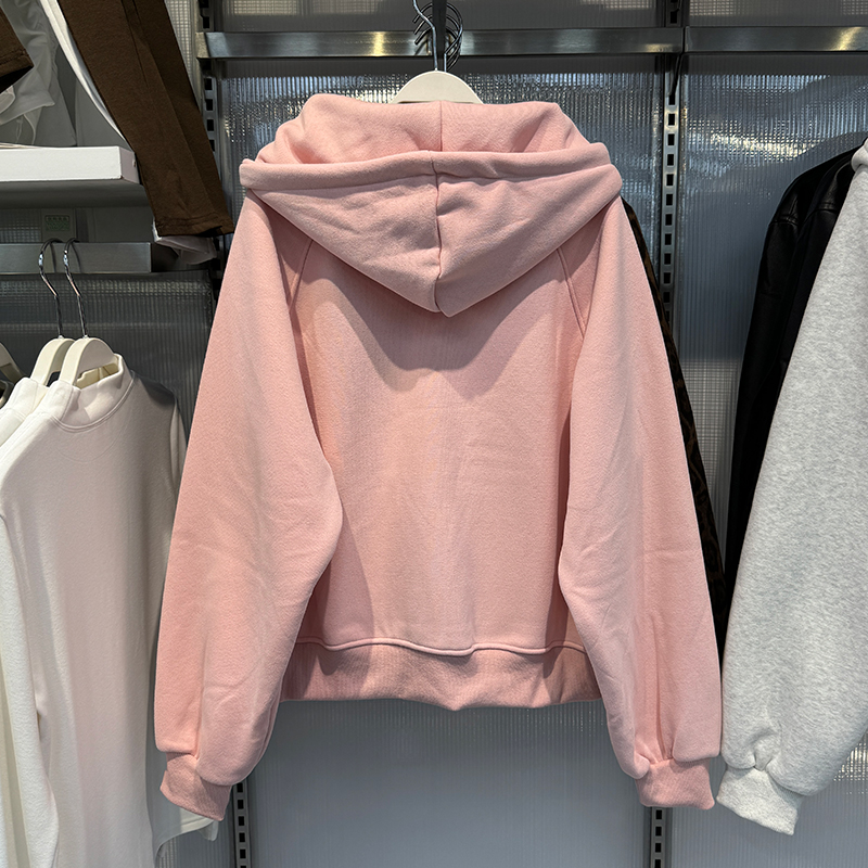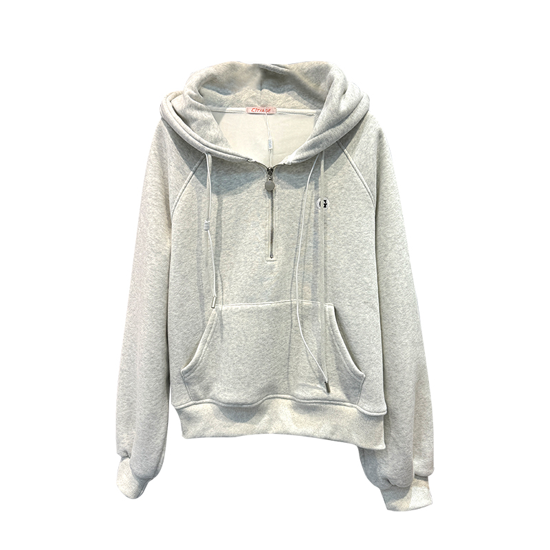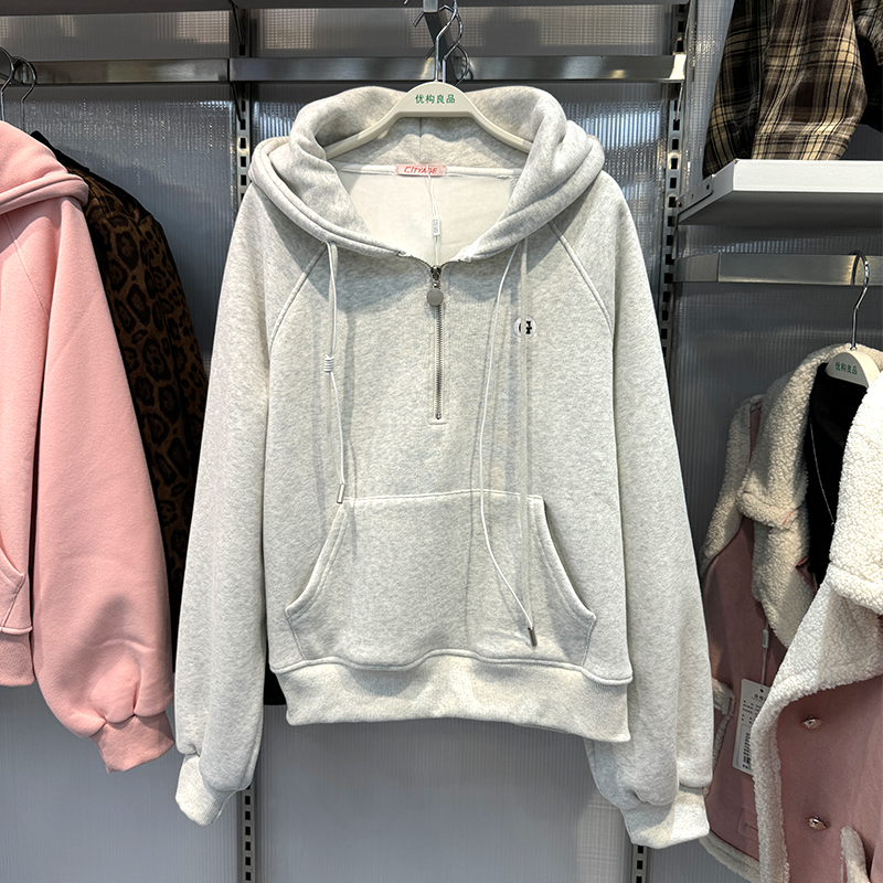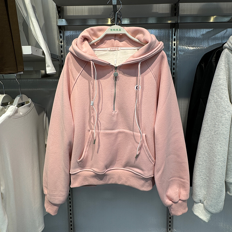优构良品卫衣女加绒加厚保暖慵懒风半拉链连帽绒衫套头衫秋冬新品