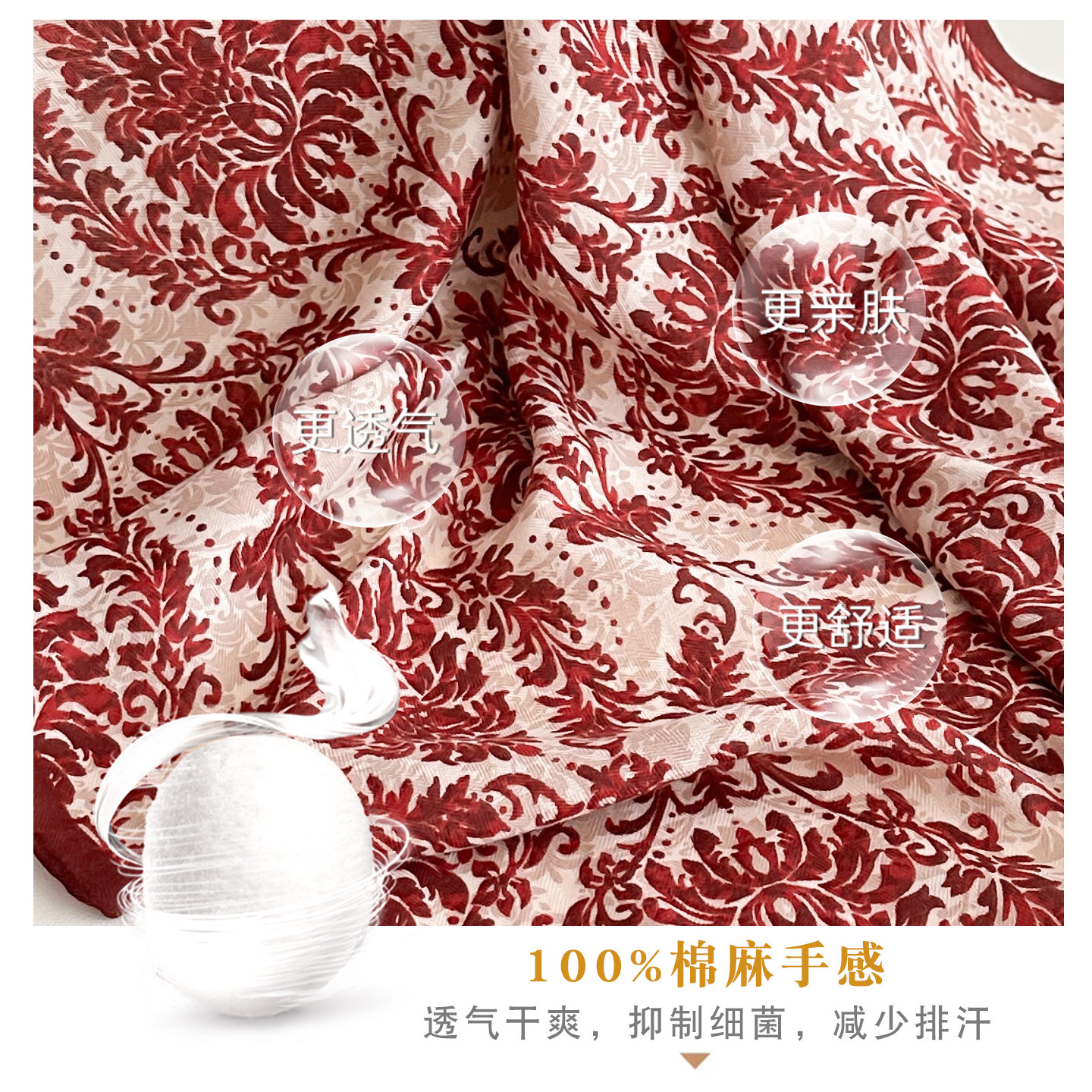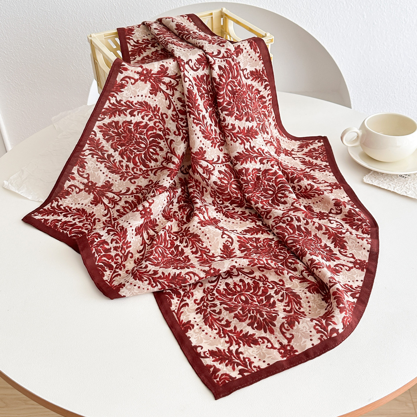 日系红色花朵棉麻小丝巾搭配衬衫屁帘护颈装饰领巾小型围巾女秋季