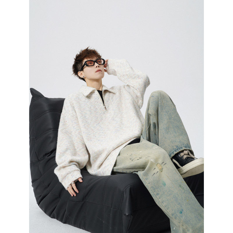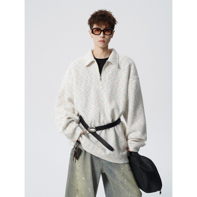 春季半拉链POLO衫卫衣大码高级慵懒设计感休闲内搭帅气学生潮流服