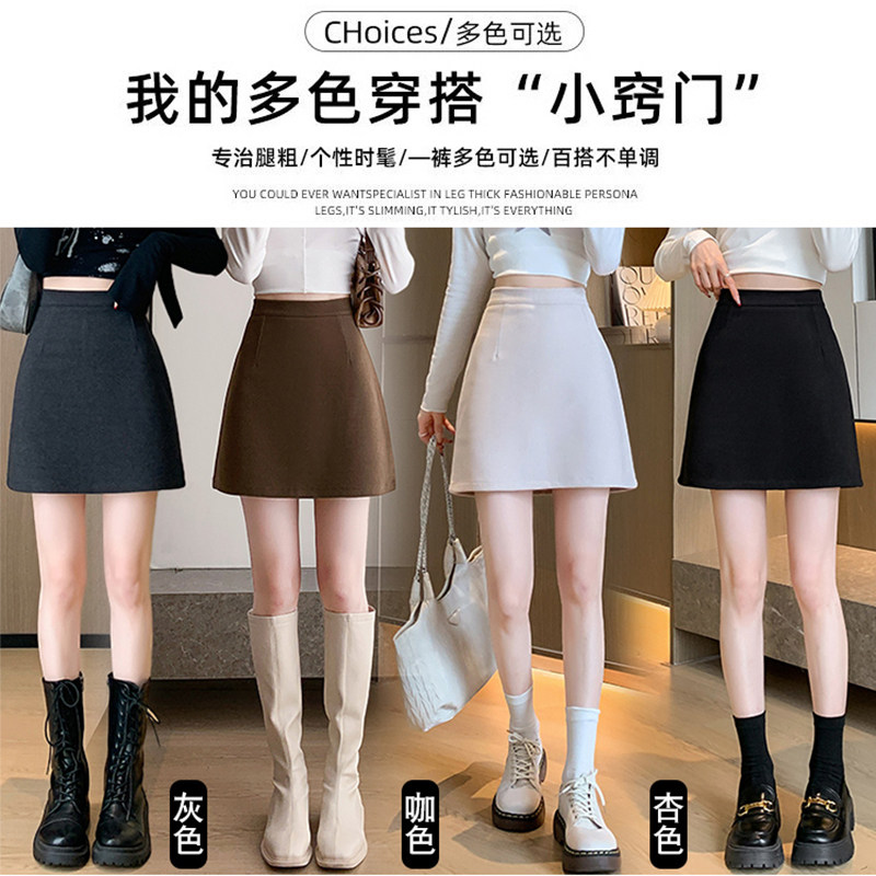 黑色毛呢半身裙女春秋2025新款高腰紧身包臀裙小个子秋冬a字短裙