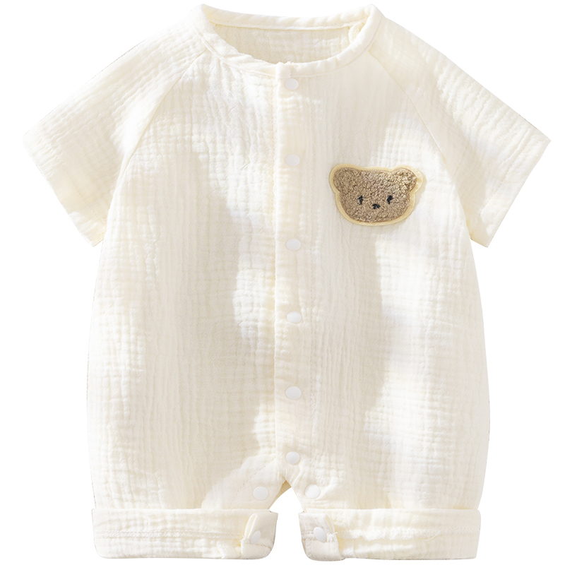 卡通熊,婴儿夏天短袖纱布连体衣