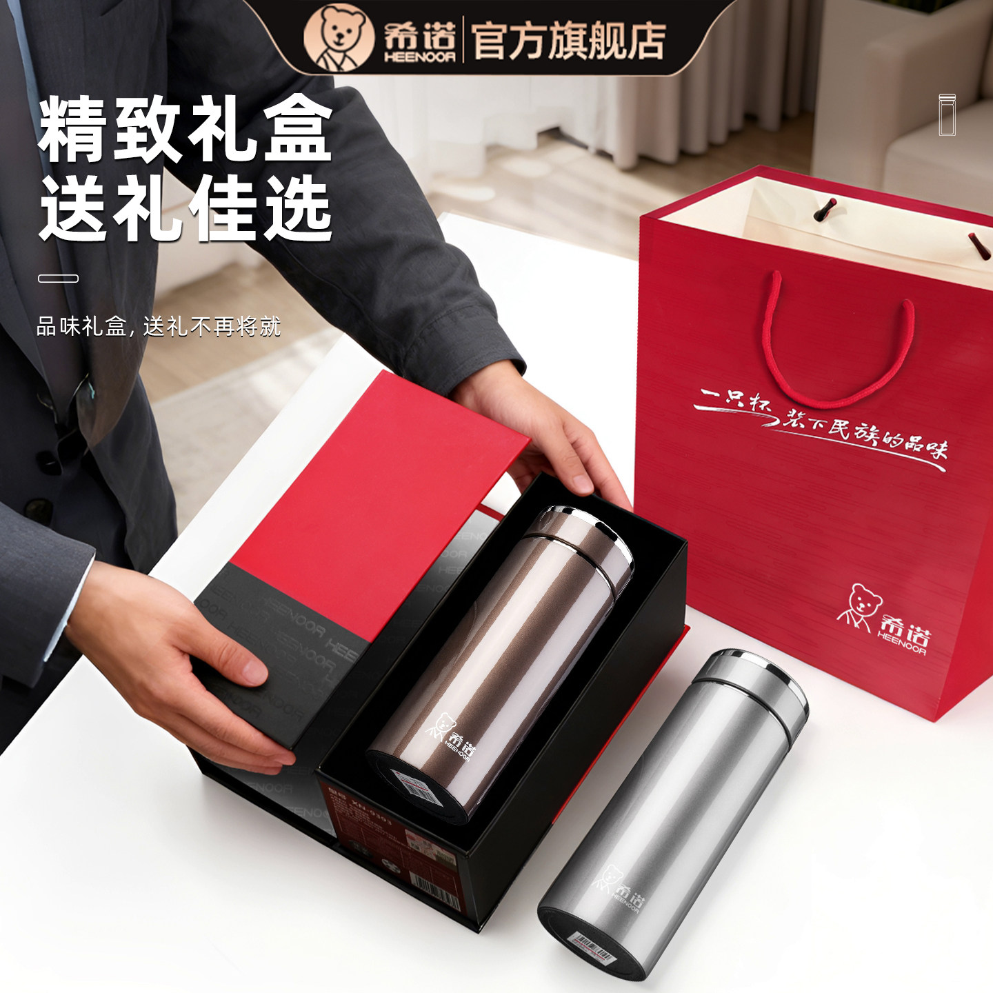 希诺保温杯商务办公泡茶杯子男女士304不锈钢便携大容量水杯礼盒