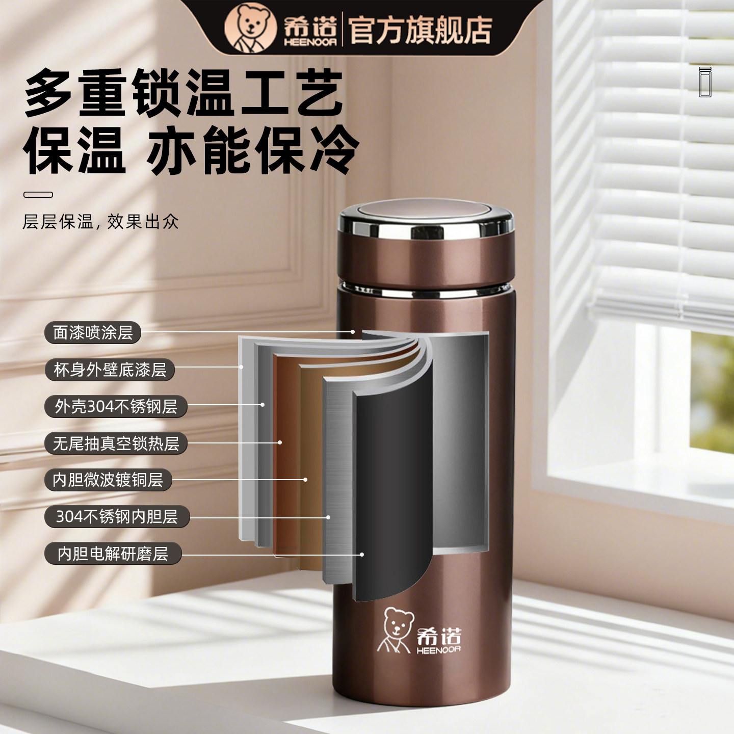 希诺保温杯新款商务办公泡茶杯子