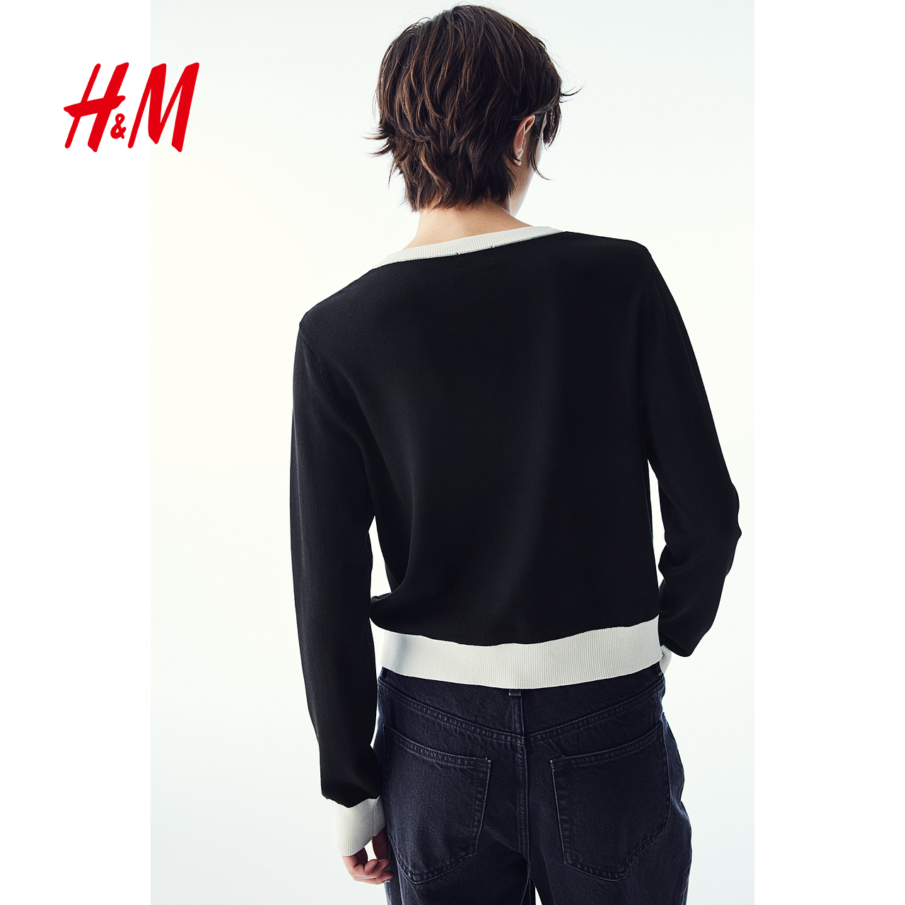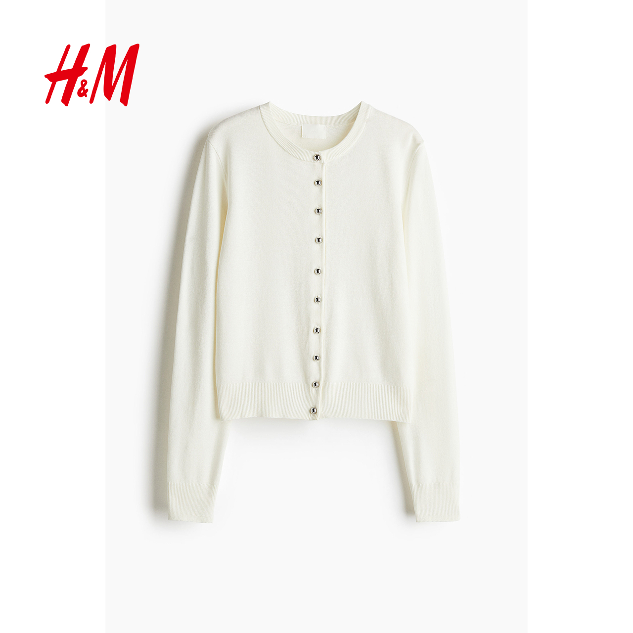 HM女装毛针织衫2025秋季新款保暖开衫外套酒红色气质上衣1237776