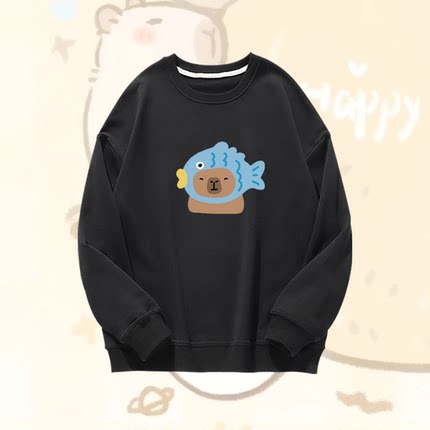 卡皮巴拉水豚君日萌系卡通男女情侣休闲百搭定制外套上衣圆领卫衣