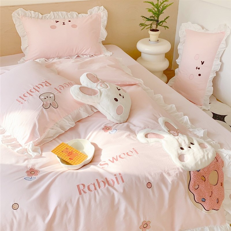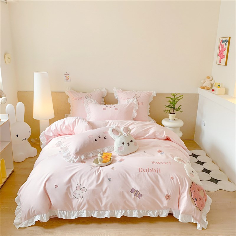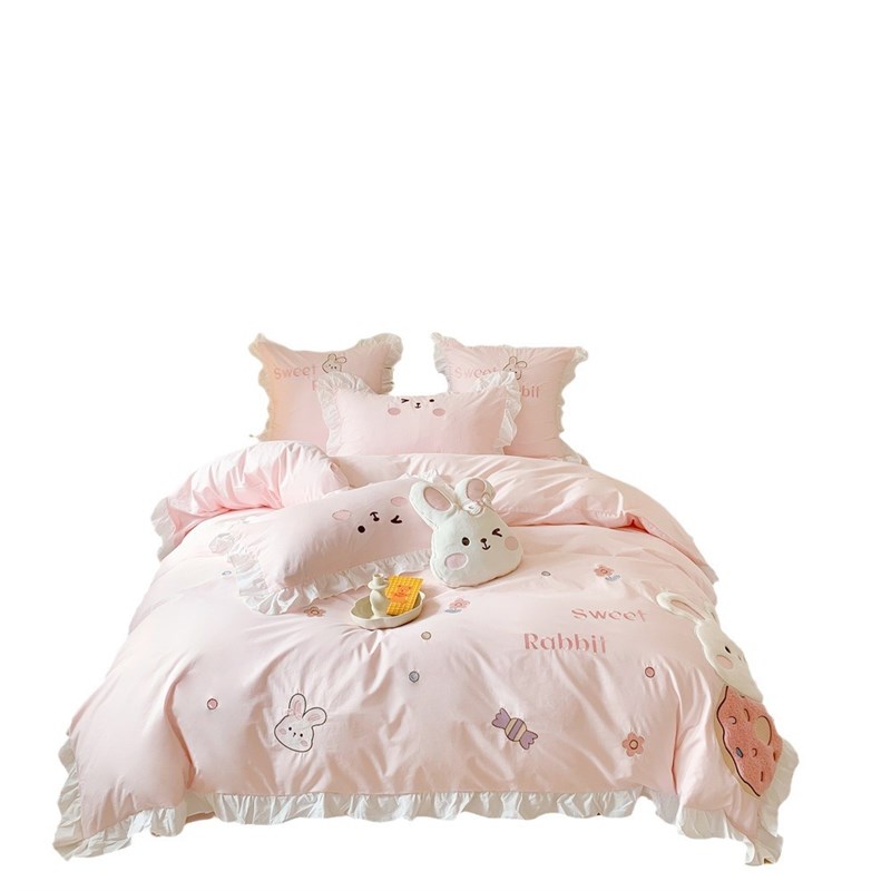 甜美可爱女孩60支水洗棉四件套全棉卡通少女心被套床上用品