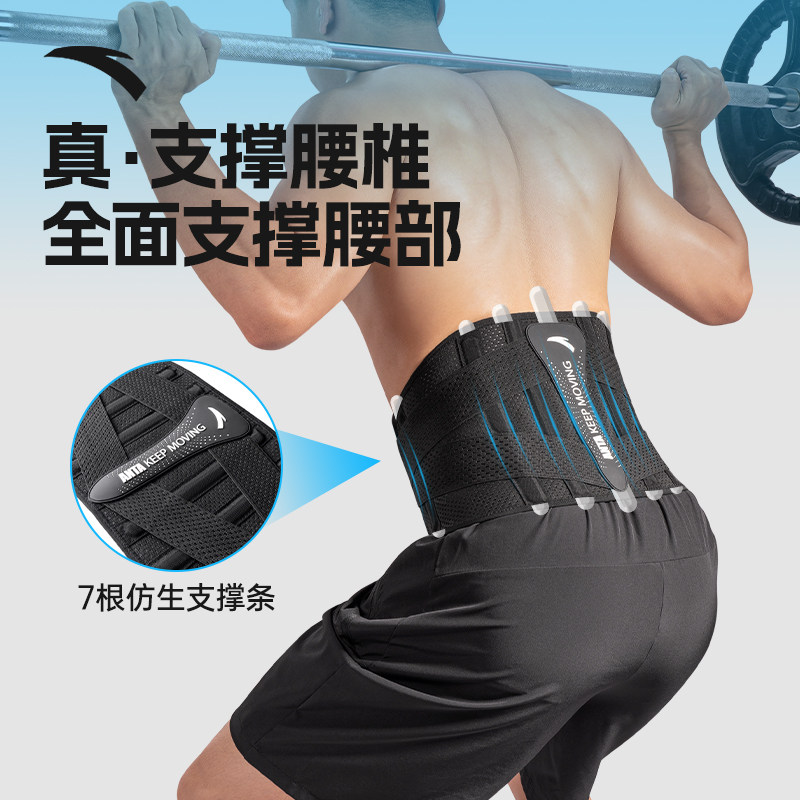 安踏护腰带男士健身运动护腰收腹带篮球举重力量训练跑步深蹲束腰