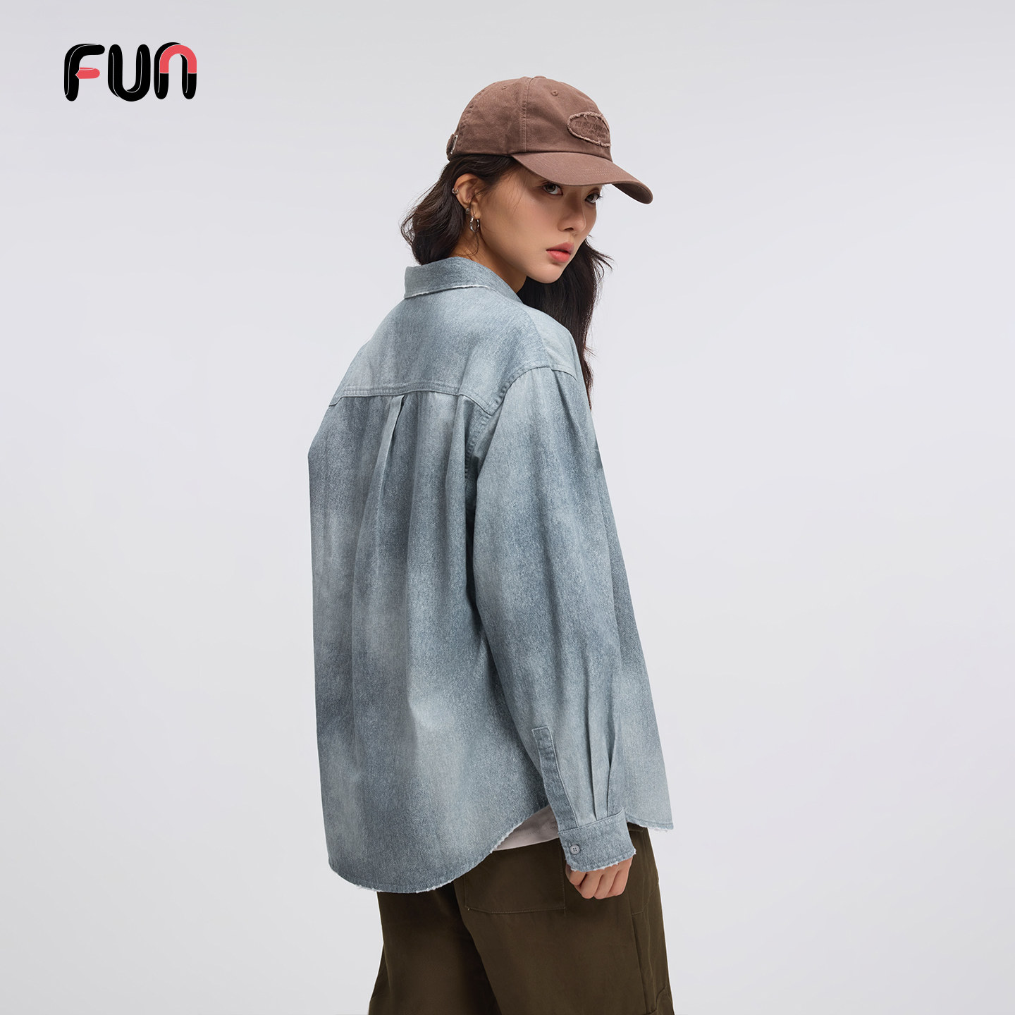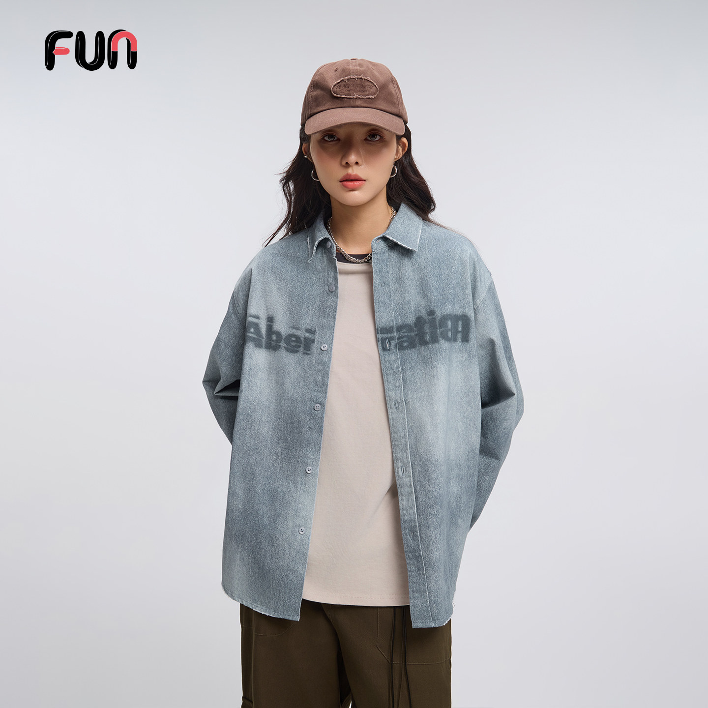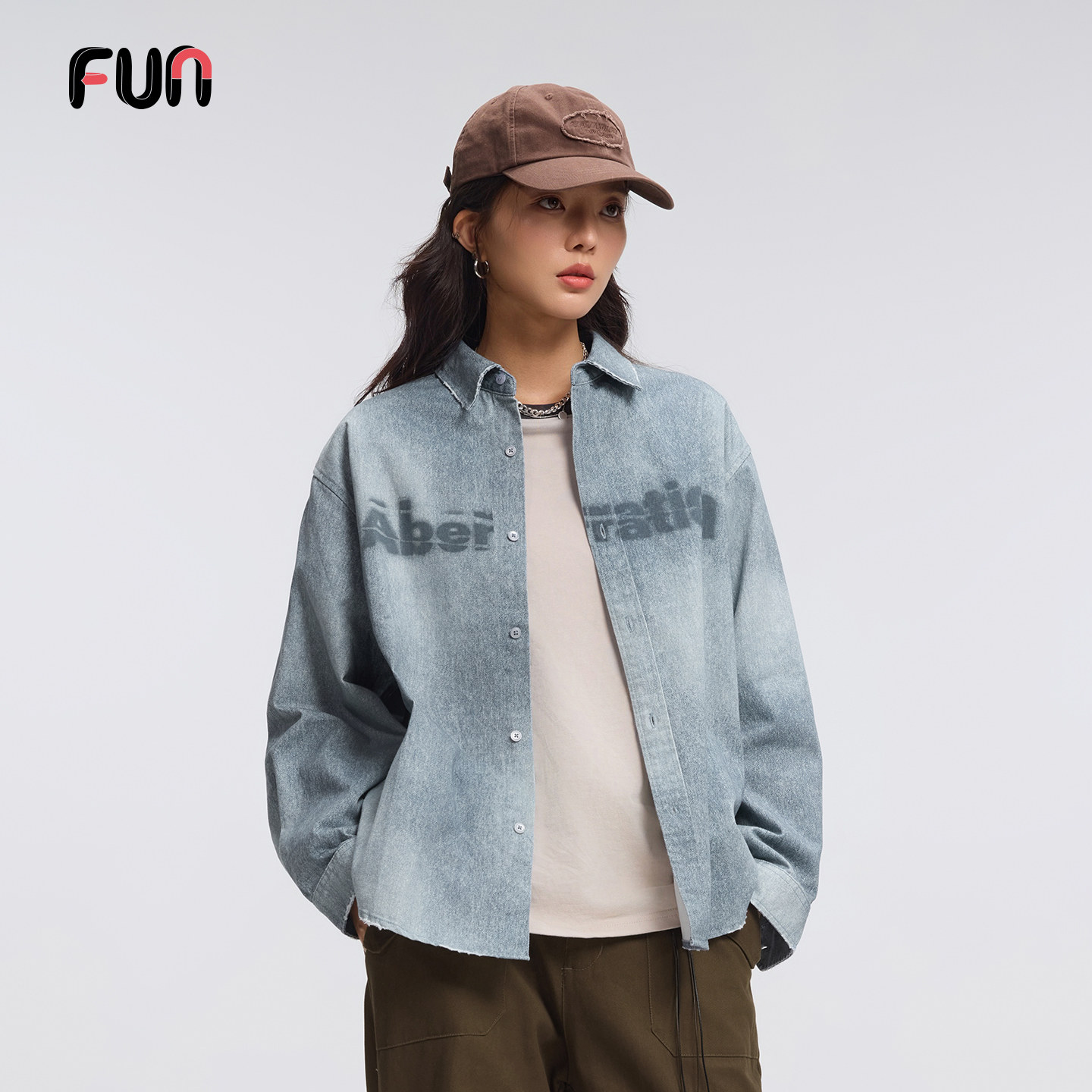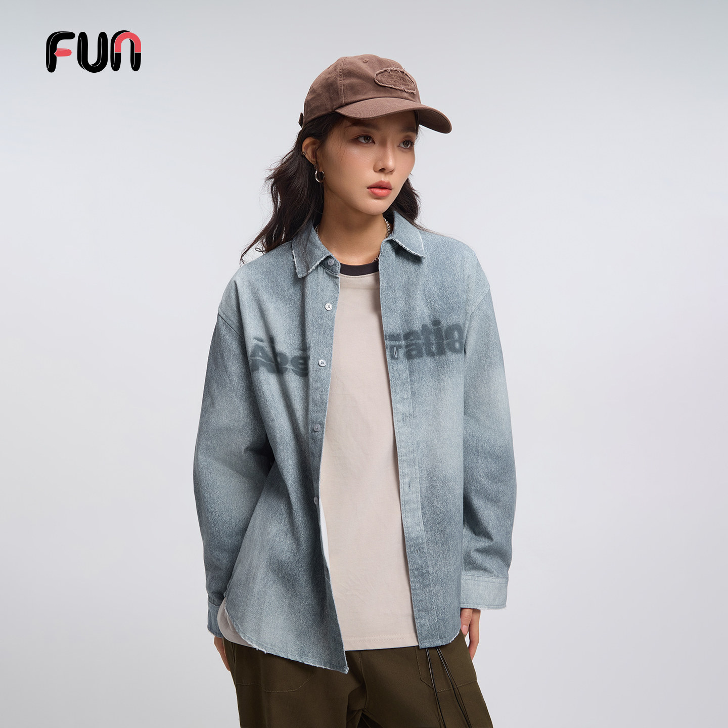 FunFUN潮牌牛仔衬衫男女2026新款宽松休闲百搭情侣上衣