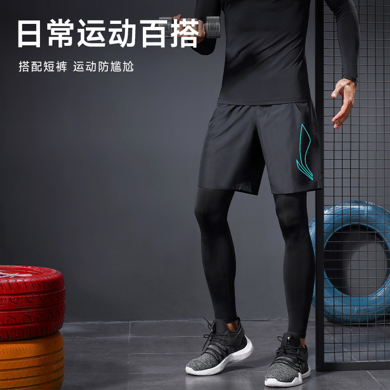 李宁紧身裤男跑步长裤压缩裤高弹训练裤健身篮球打底运动套装体育