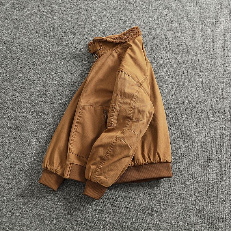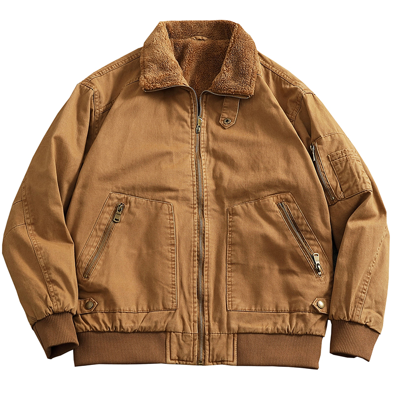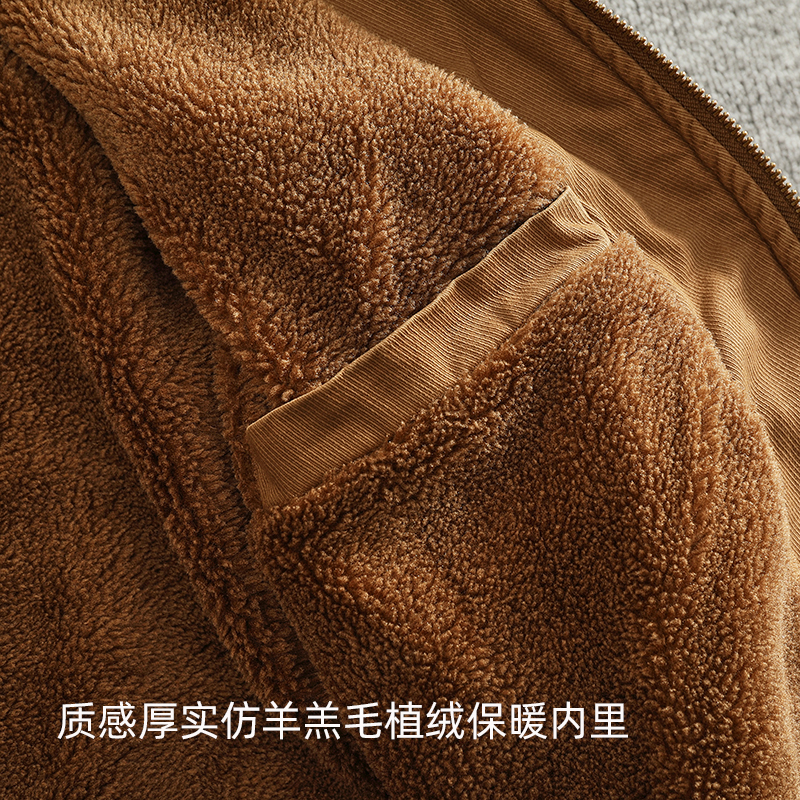 冬季款毛领棉衣男仿羊羔毛内里保暖飞行夹克防寒工装外套休闲棉服