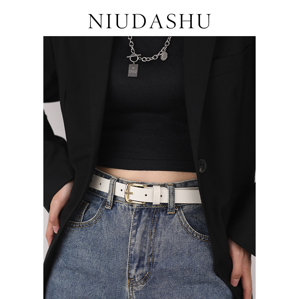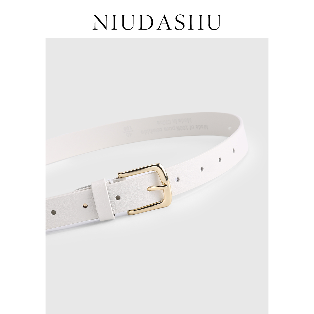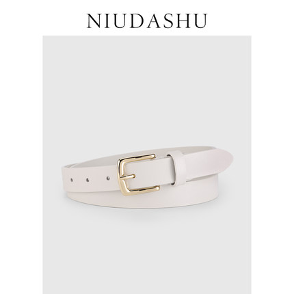 新款牛皮皮带女细真皮装饰裤带小腰带女白色时尚百搭浅色女款显瘦