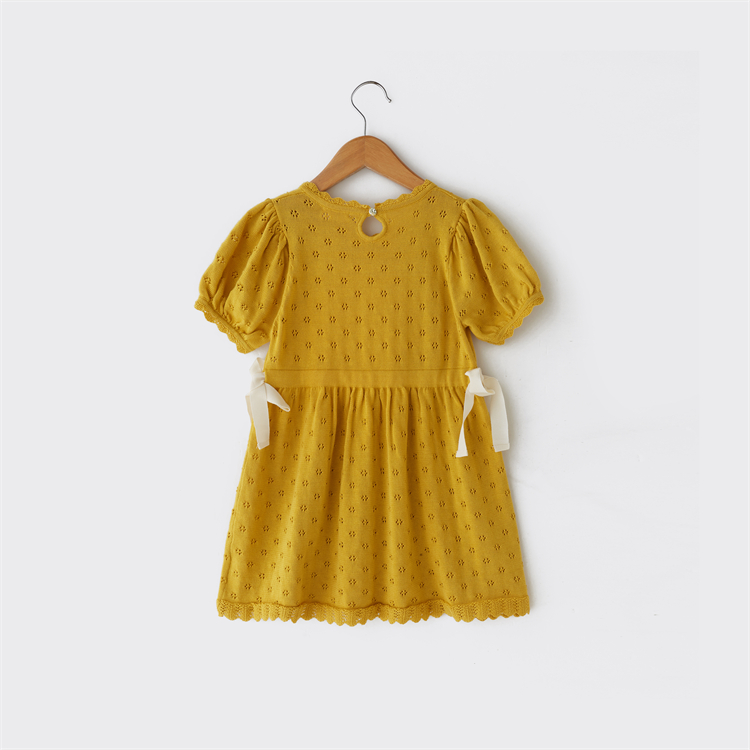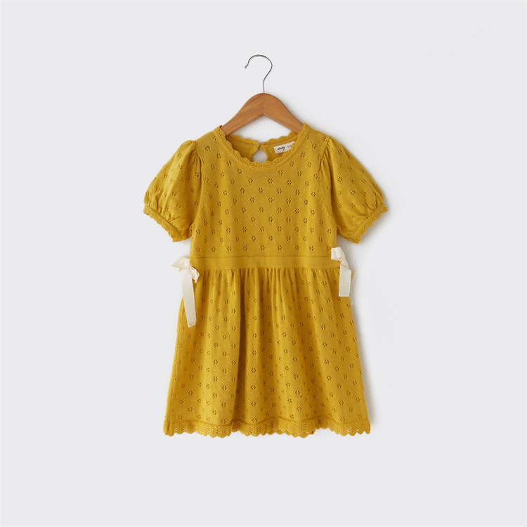 2023新款女童针织连衣裙儿童牛油果绿镂空短袖连衣裙宝宝纯棉裙子