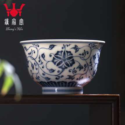 钟家窑小茶杯景德镇青花柴窑缠枝主人杯单杯陶瓷客杯长辈送礼礼盒