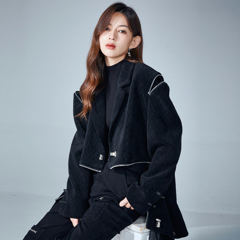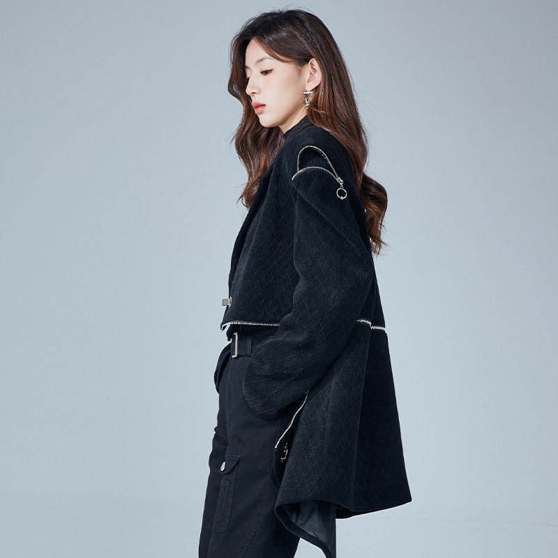 金苑可拆卸小西装外套女冬季新款时尚国风设计感大衣E225111