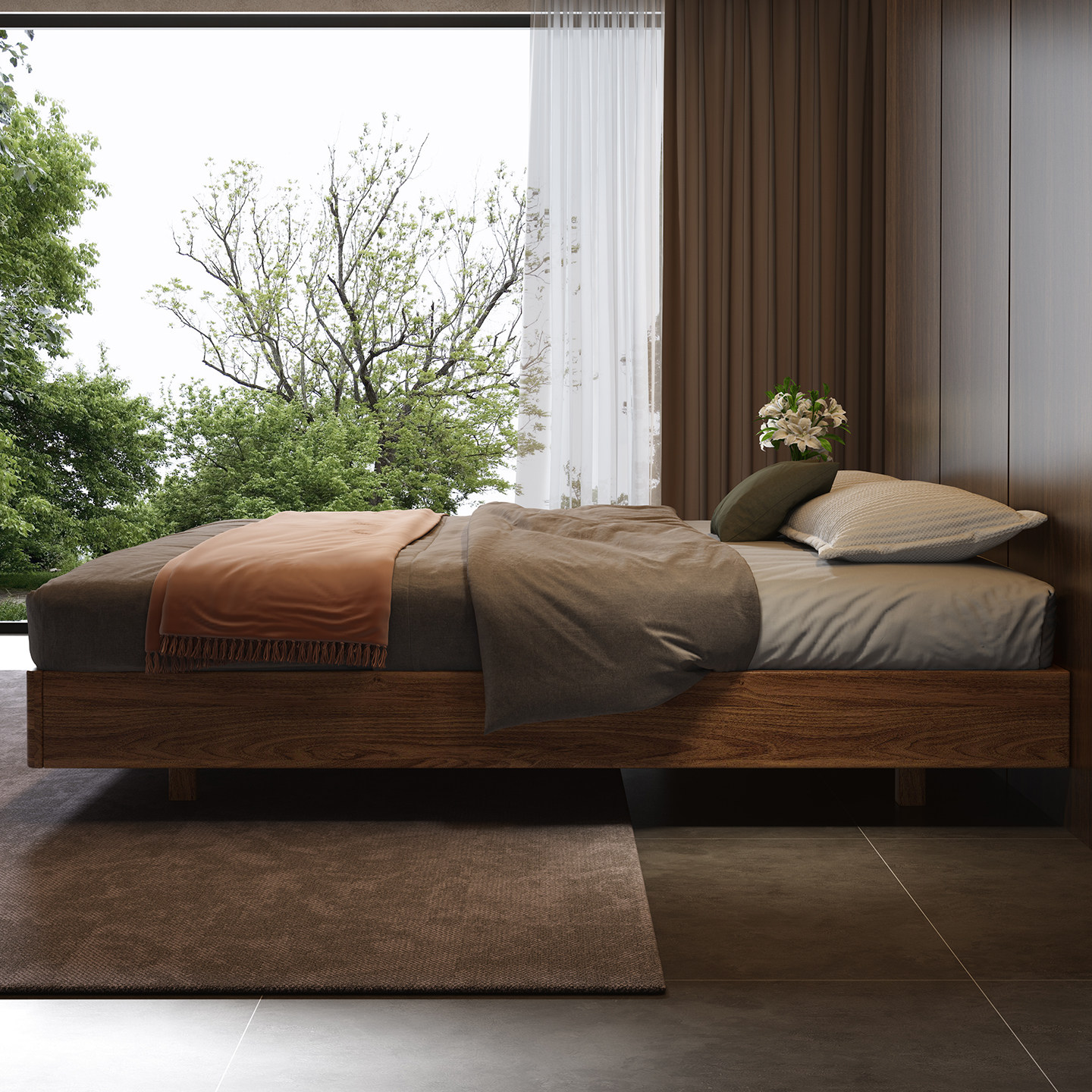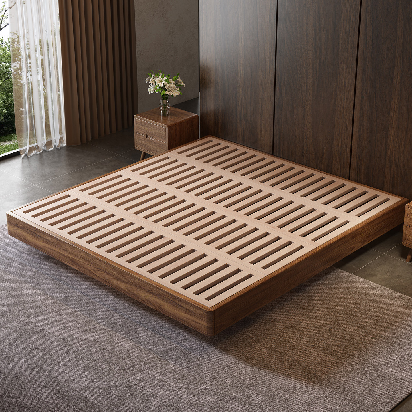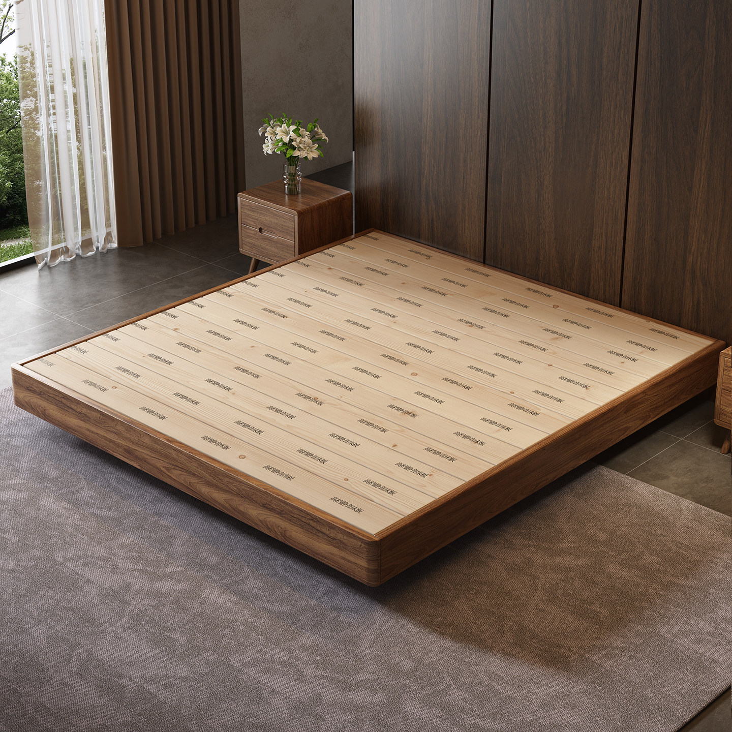 无床头实木床卧室家用轻奢简约黑胡桃木榻榻米双人床小户型悬浮床