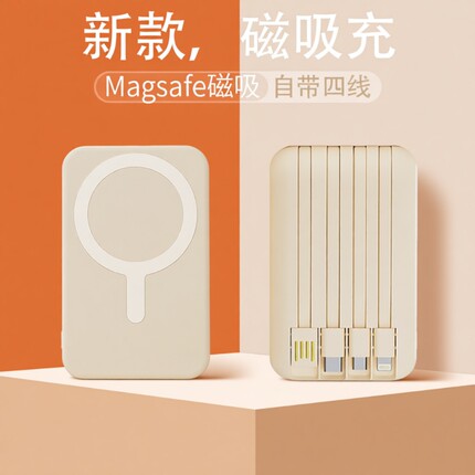 磁吸充电宝20000毫安自带线【新国标3C认证2025大容量快充超薄小巧便携无线适用苹菓17专用手机超薄小巧便携