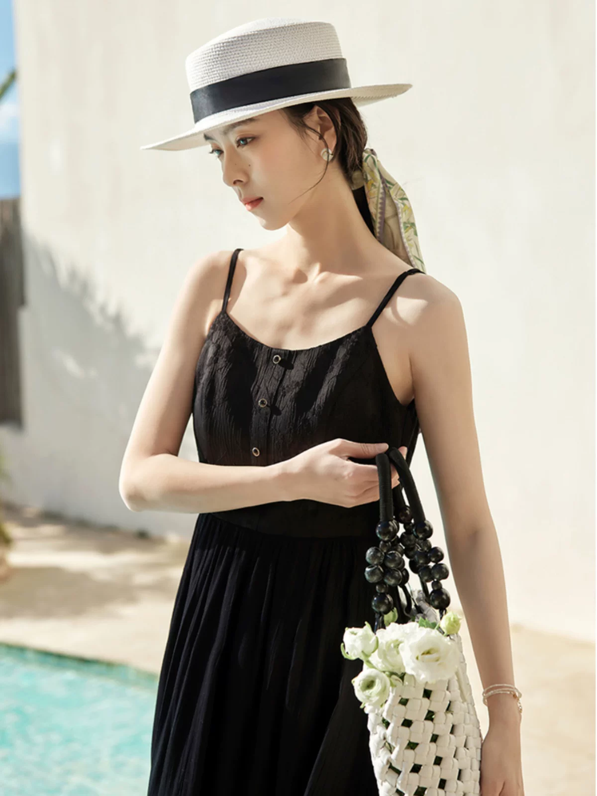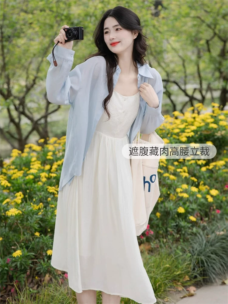 茵曼法式纯色提花肌理吊带裙女士2024年夏新款收腰显瘦a字连衣裙