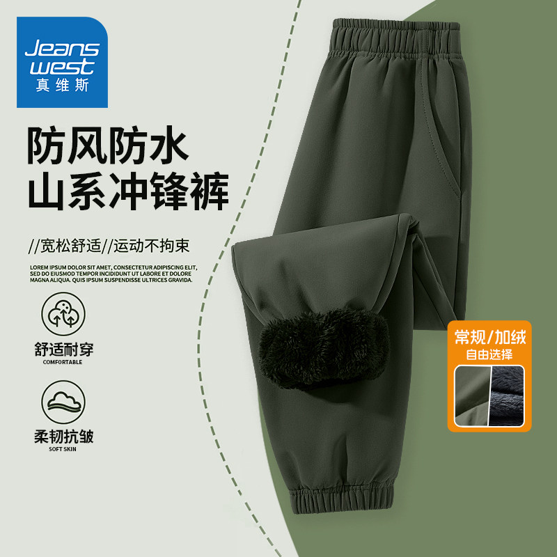 真维斯童装男童冲锋裤秋冬款儿童加绒防风防水裤冬季加厚运动裤子