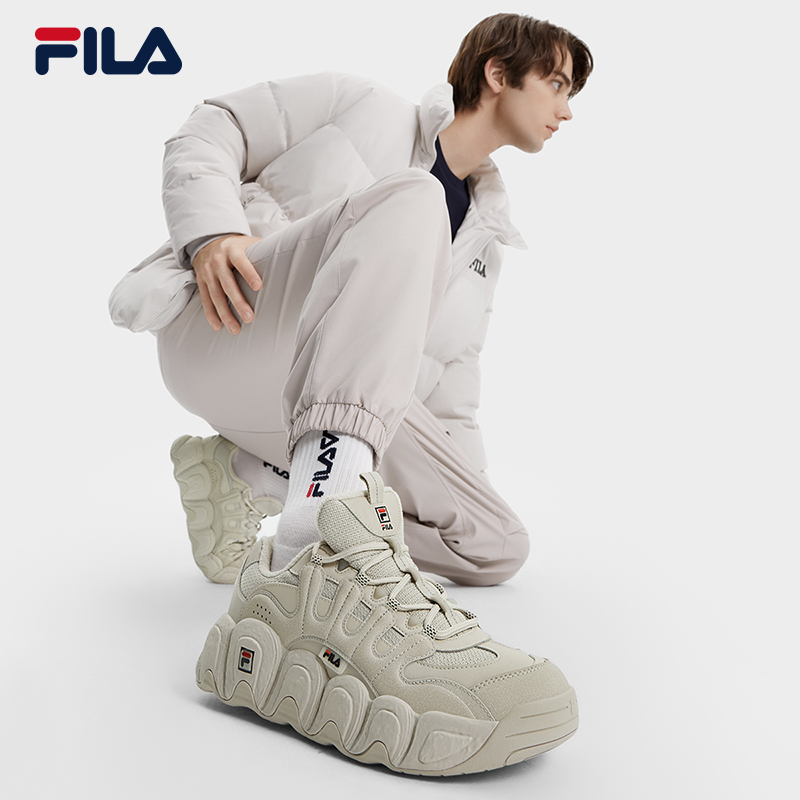 FILA 斐乐官方男鞋加绒可颂鞋面包老爹鞋运动鞋冬季复古休闲鞋子