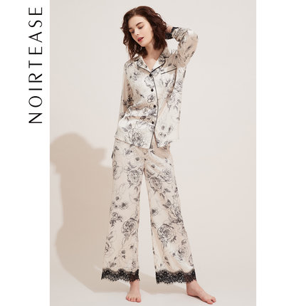 NoirTease奈黎诗春夏薄款长袖睡衣两件套性感蕾丝家居服套装女秋