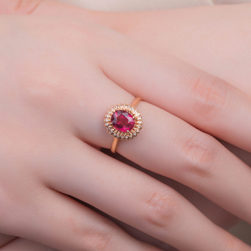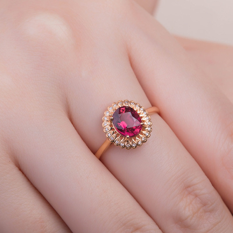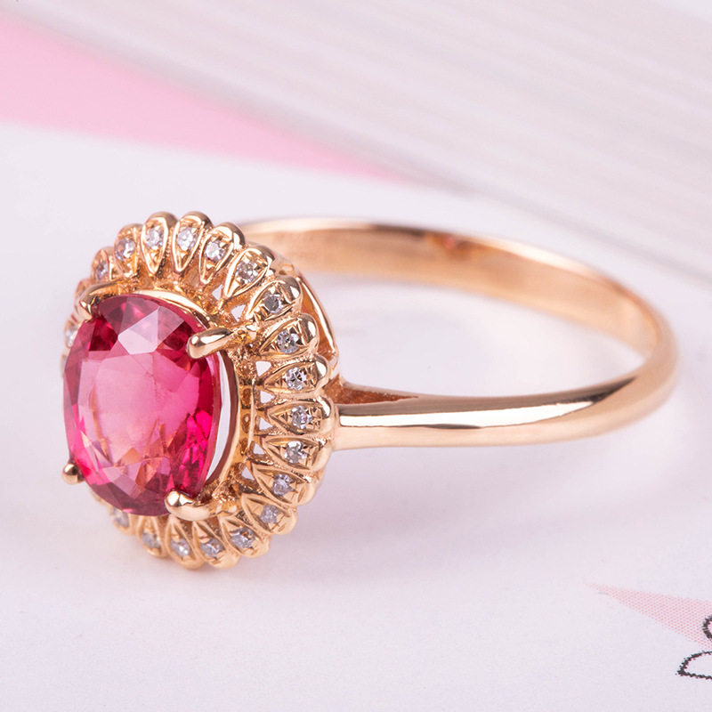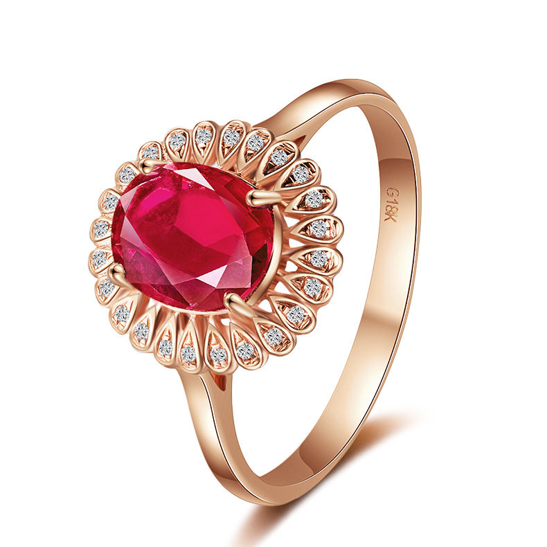 欧美高端珠宝少女甜美结婚钻戒仿真红碧玺硞石镶钻镀玫瑰金戒指