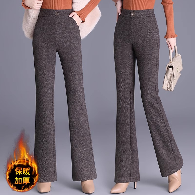 羊绒毛呢高腰微喇叭裤女秋冬新款时尚洋气松紧腰加厚休闲裤子百搭