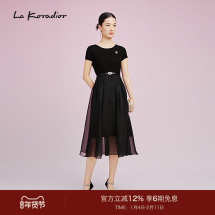 La Koradior拉珂蒂减龄修身时尚简约2025夏重磅精纺冰丝连衣裙女