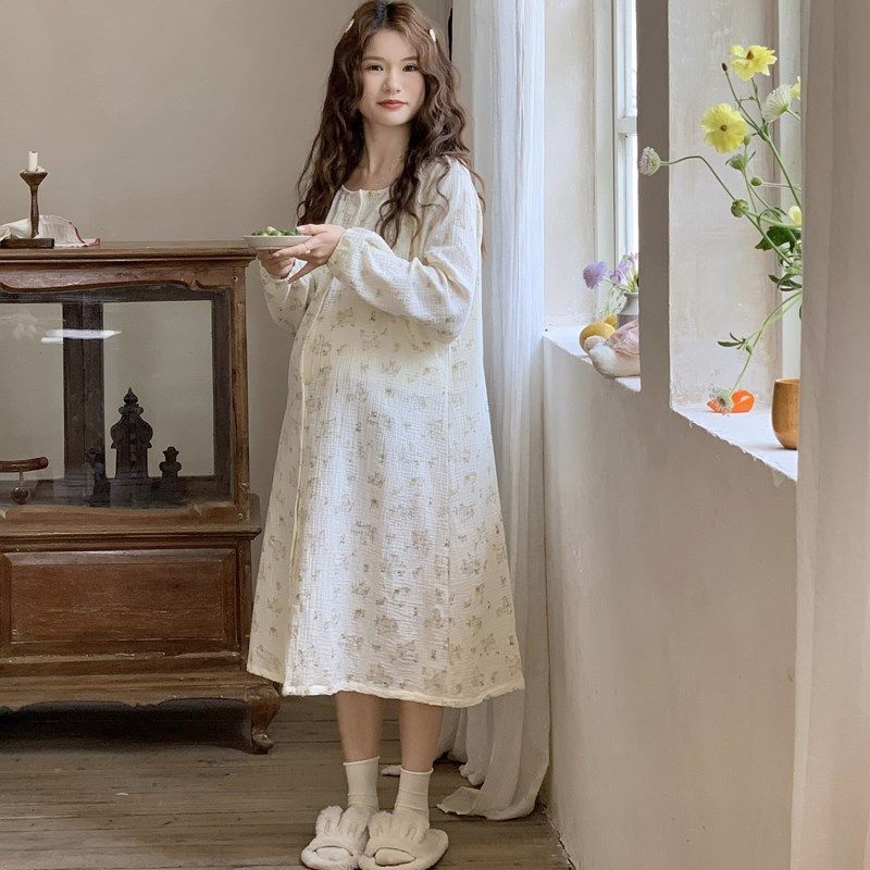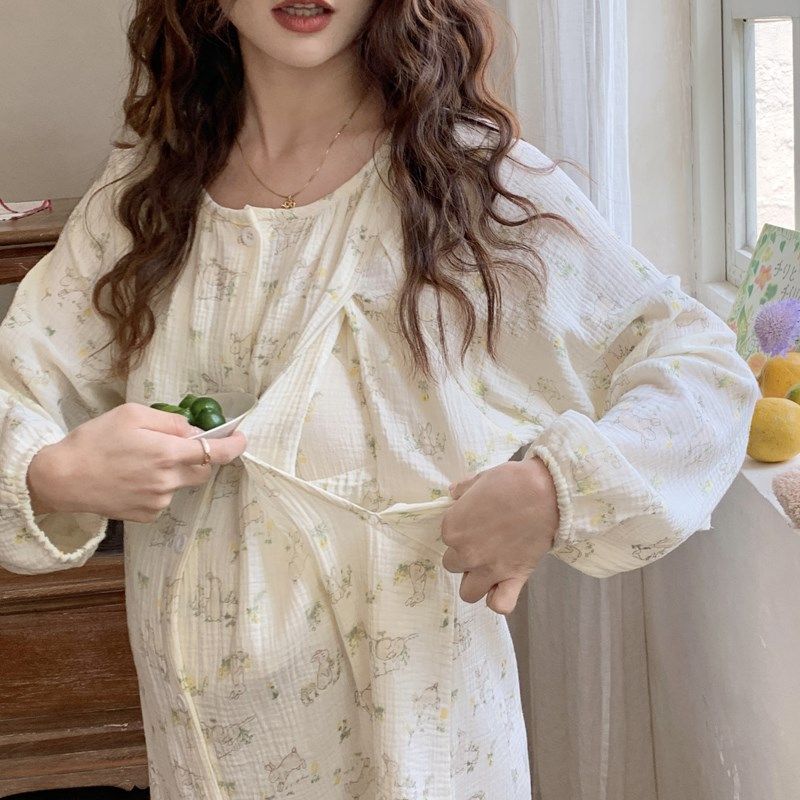 孕妇进产房待产裙带胸垫哺乳睡裙夏季薄款a类纯棉纱布月子服产后