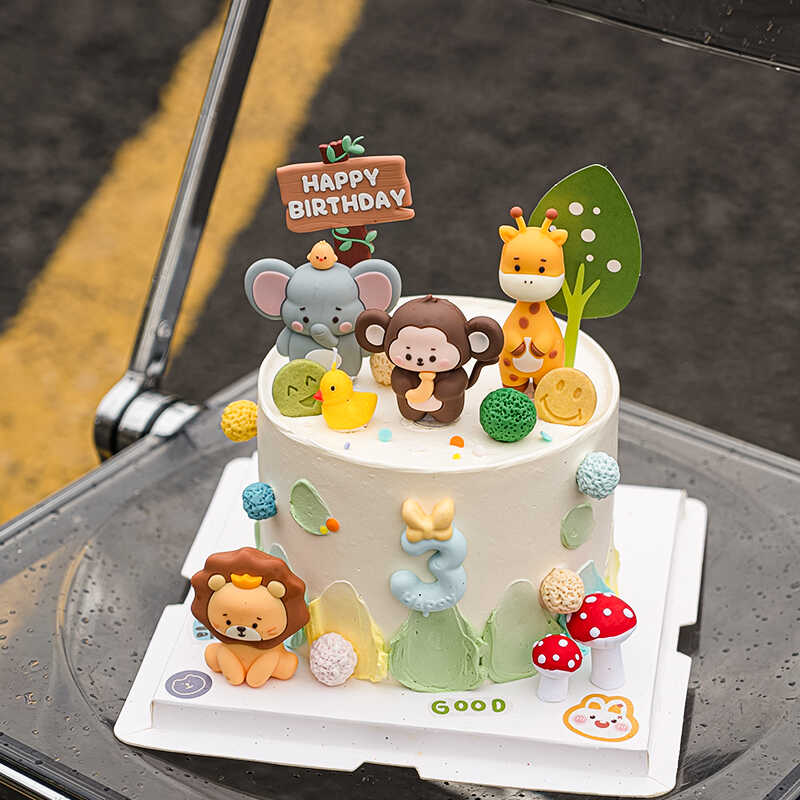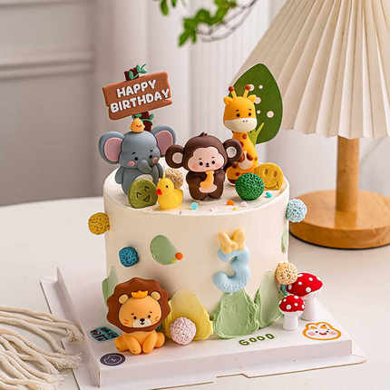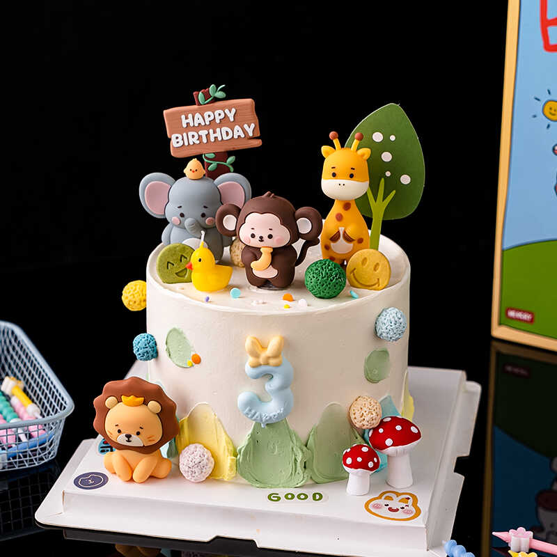 网红生日蛋糕装饰摆件卡通软胶小动物儿童宝宝周岁猴象狮子长颈鹿
