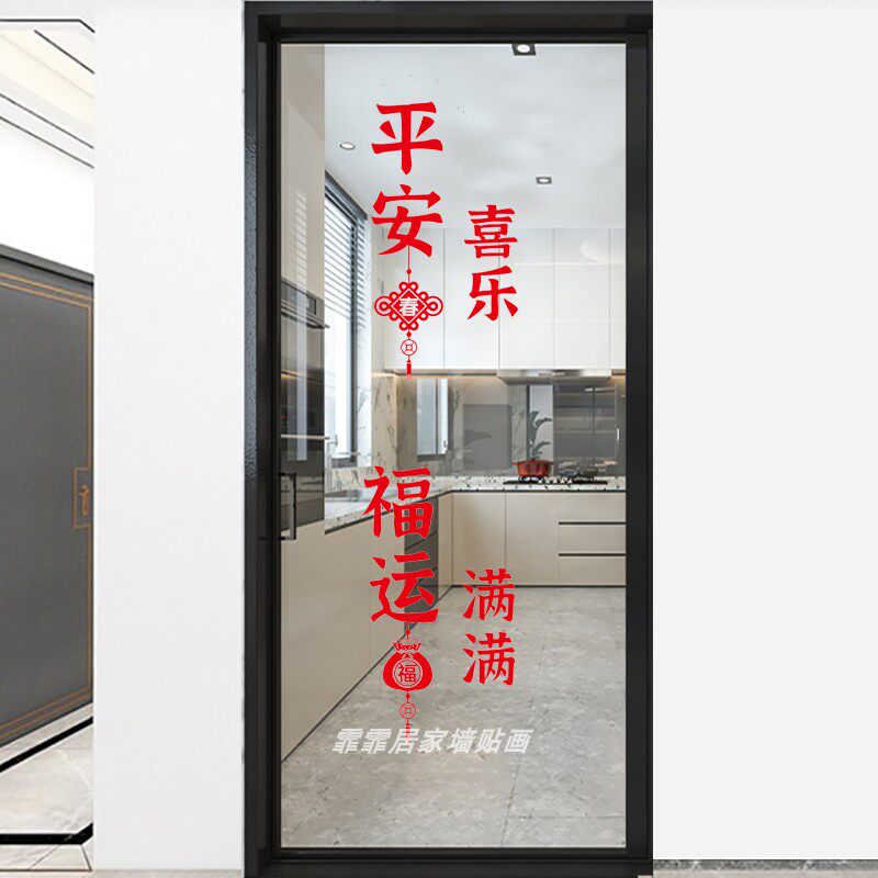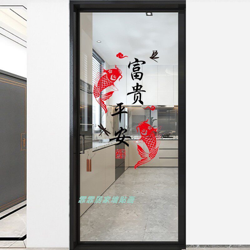 单开门贴装饰厨房推拉门贴纸玻璃防撞墙贴单扇门贴画防水贴画自粘