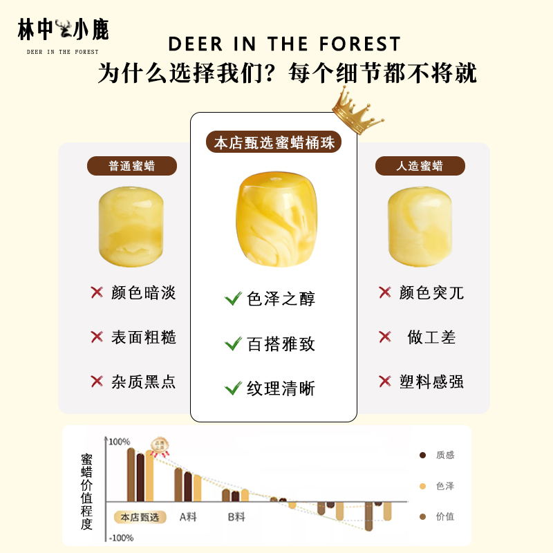 天然原矿蜜蜡桶珠单颗琥珀顶珠手串散珠锁骨链金刚星月菩提配饰