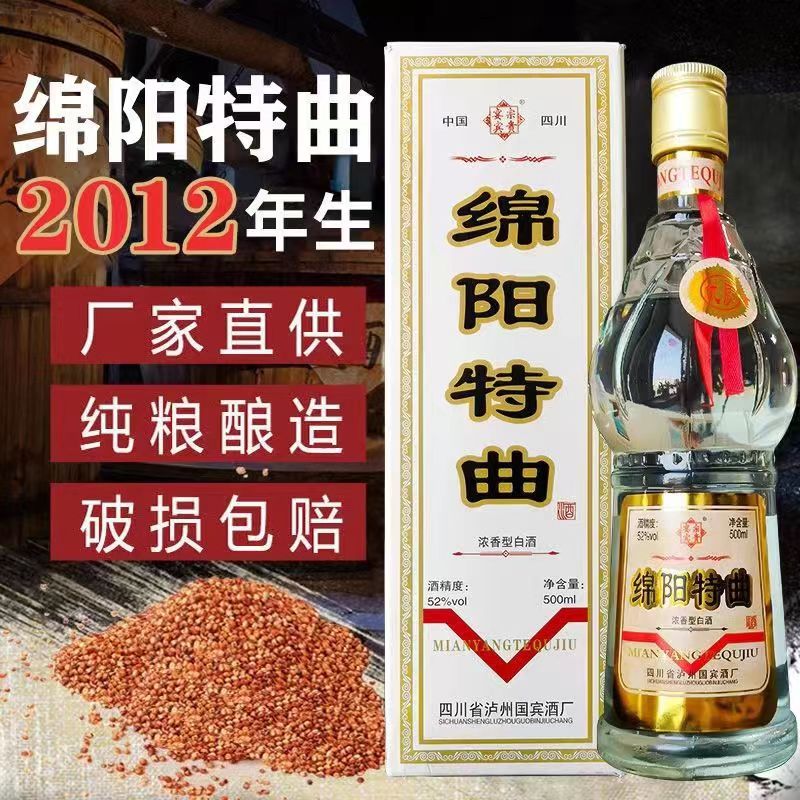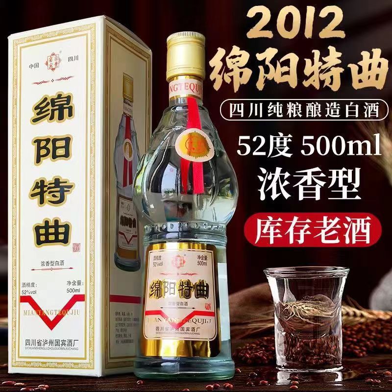 绵阳特曲52度12年纯粮食白酒库存年份酒窖藏礼盒6瓶装陈年老酒