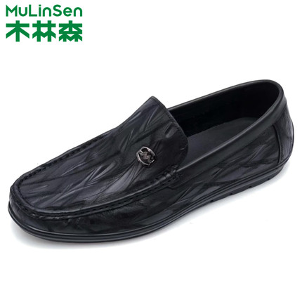 木林森男鞋2025夏季新款男士豆豆鞋真皮透气软皮软底一脚蹬休闲鞋