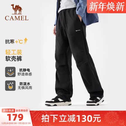 骆驼户外休闲裤男加绒冲锋软壳裤防风耐磨工装长裤伞兵裤女士裤子
