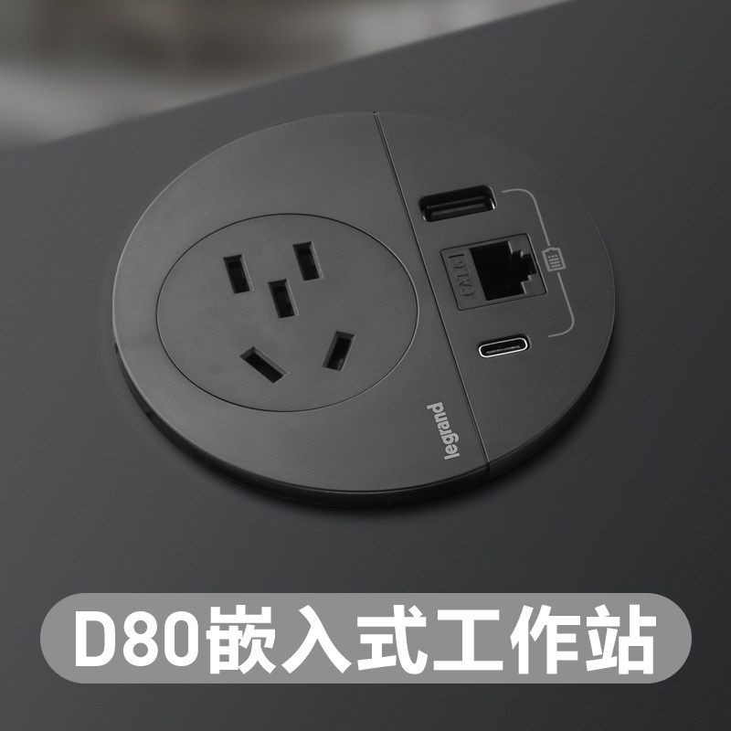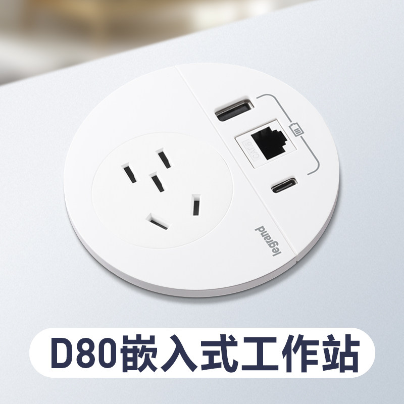罗格朗桌面插座嵌入式多媒体办公带usb桌洞插线板多功能插座面板