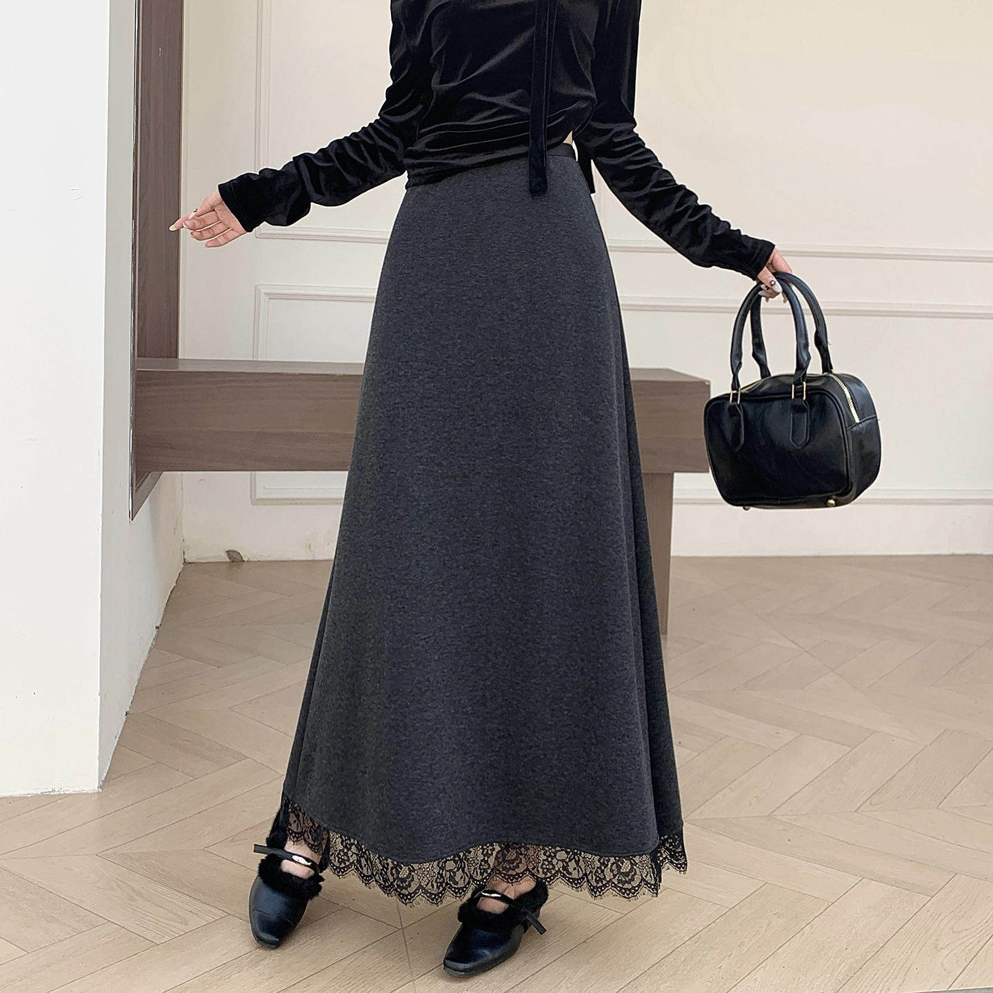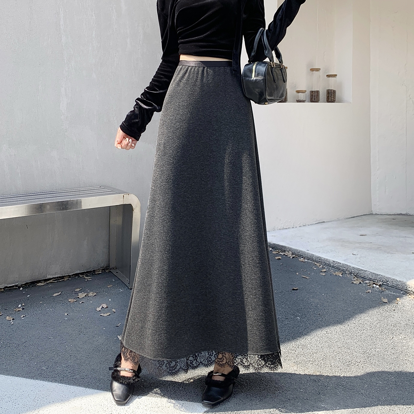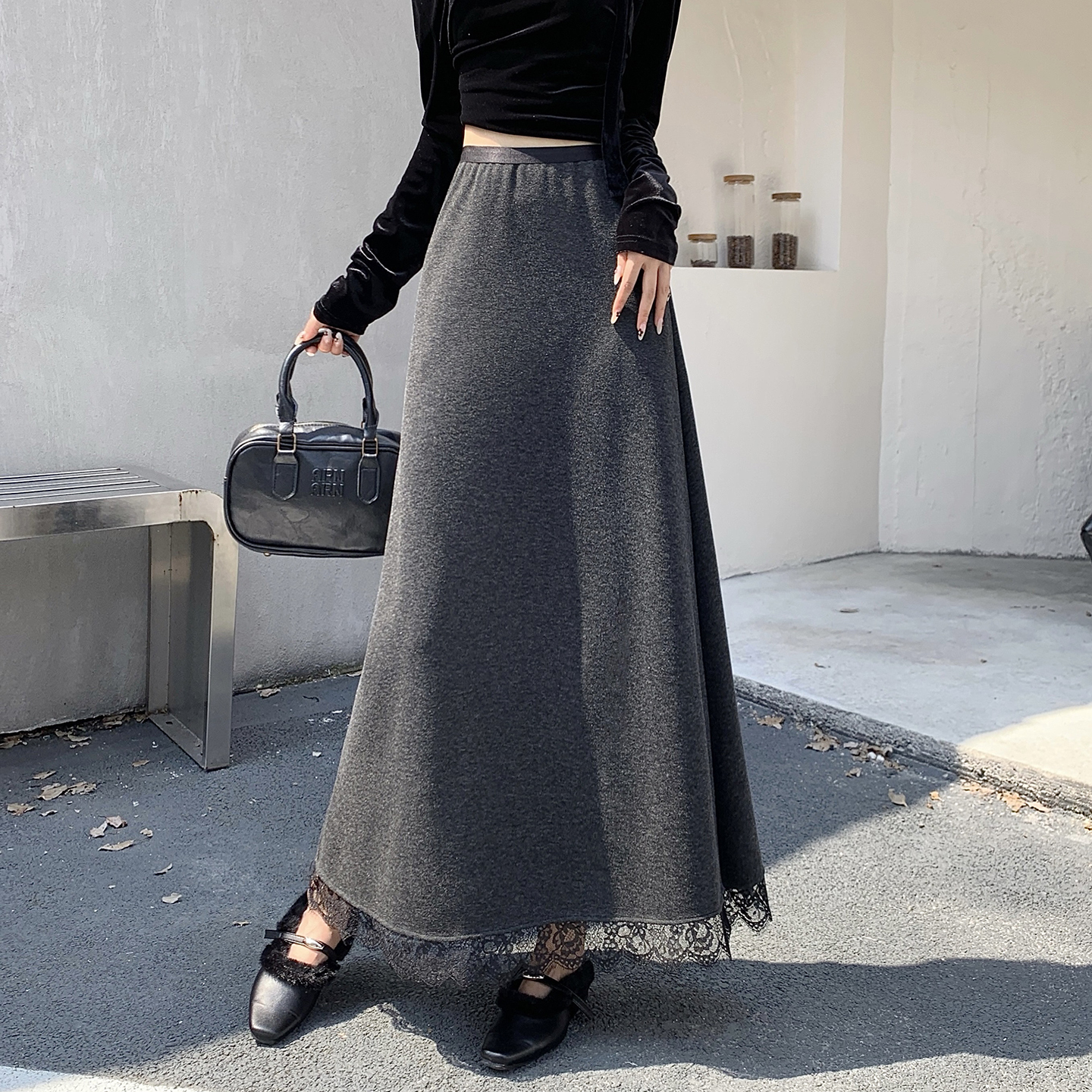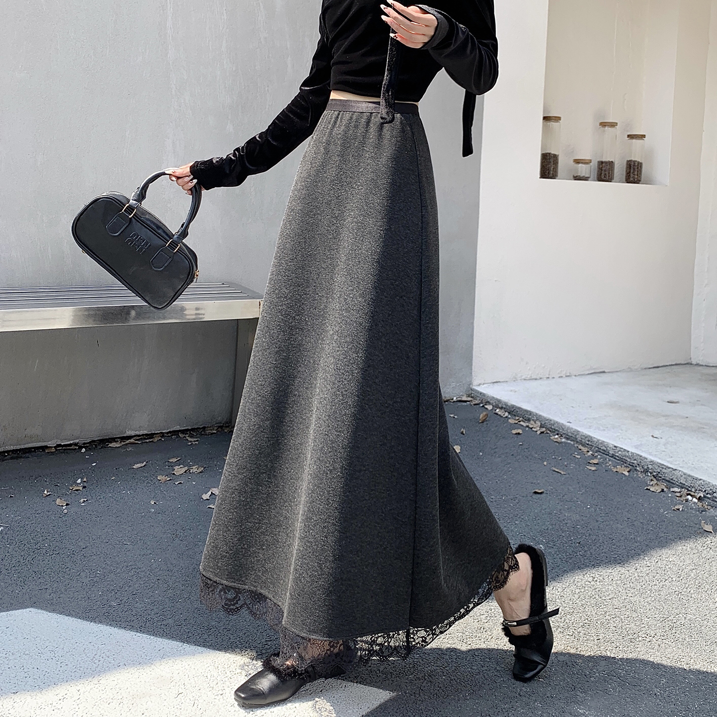 设计感蕾丝花边毛呢半身裙女秋冬2025高腰显瘦显腿长中长款a字裙