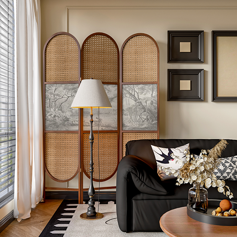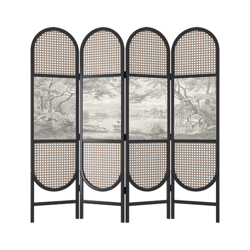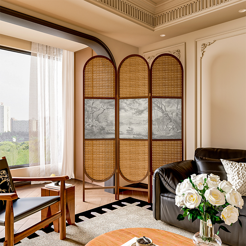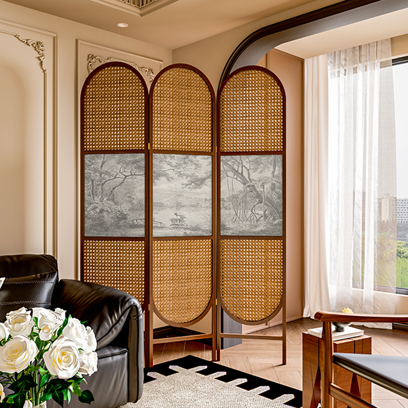 美式欧式复古实木藤编折叠屏风隔断装饰玄关客厅艺术风景移动折屏