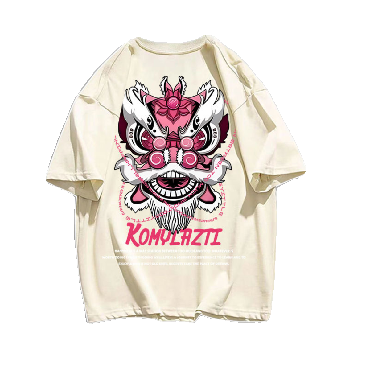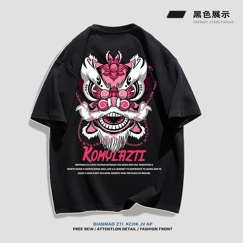 重磅纯棉国风龙年醒狮印花短袖T恤男女宽松百搭潮流春季新年上衣