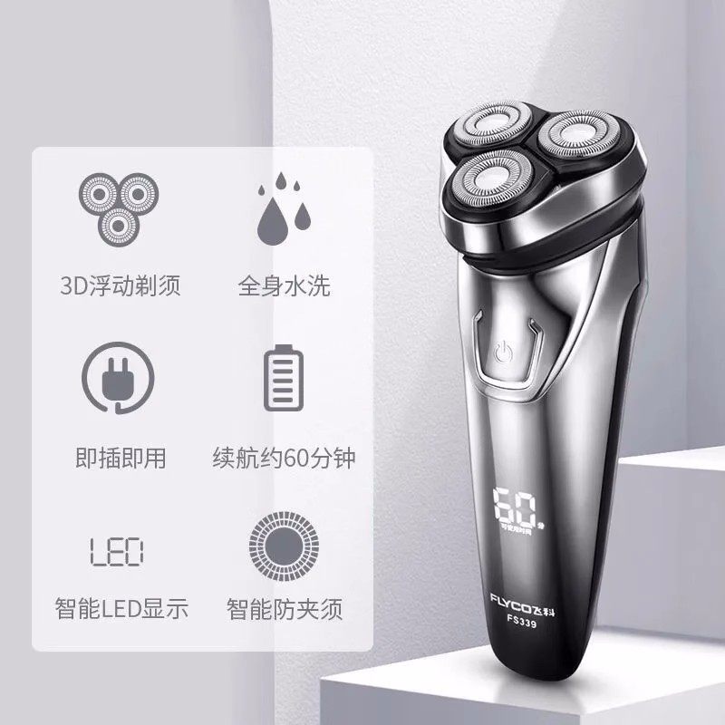 飞科剃须刀FS339充电动式全身水洗3刀头男士高端智能刮胡刀胡须刀