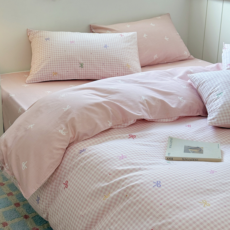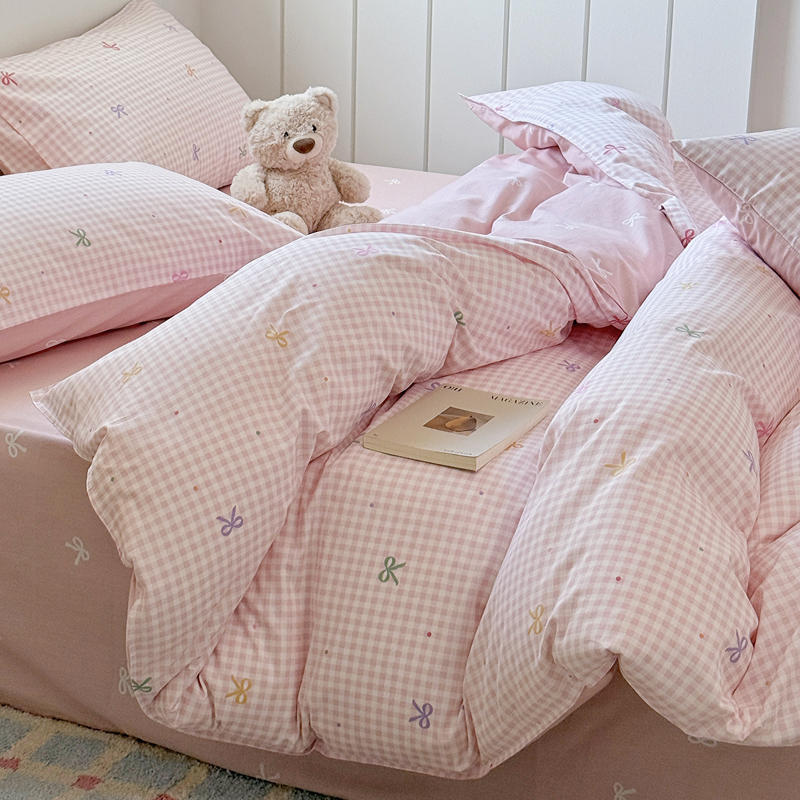夏日恋格粉l儿童100纯棉床品定制床单被套单件床笠定做全棉褥套