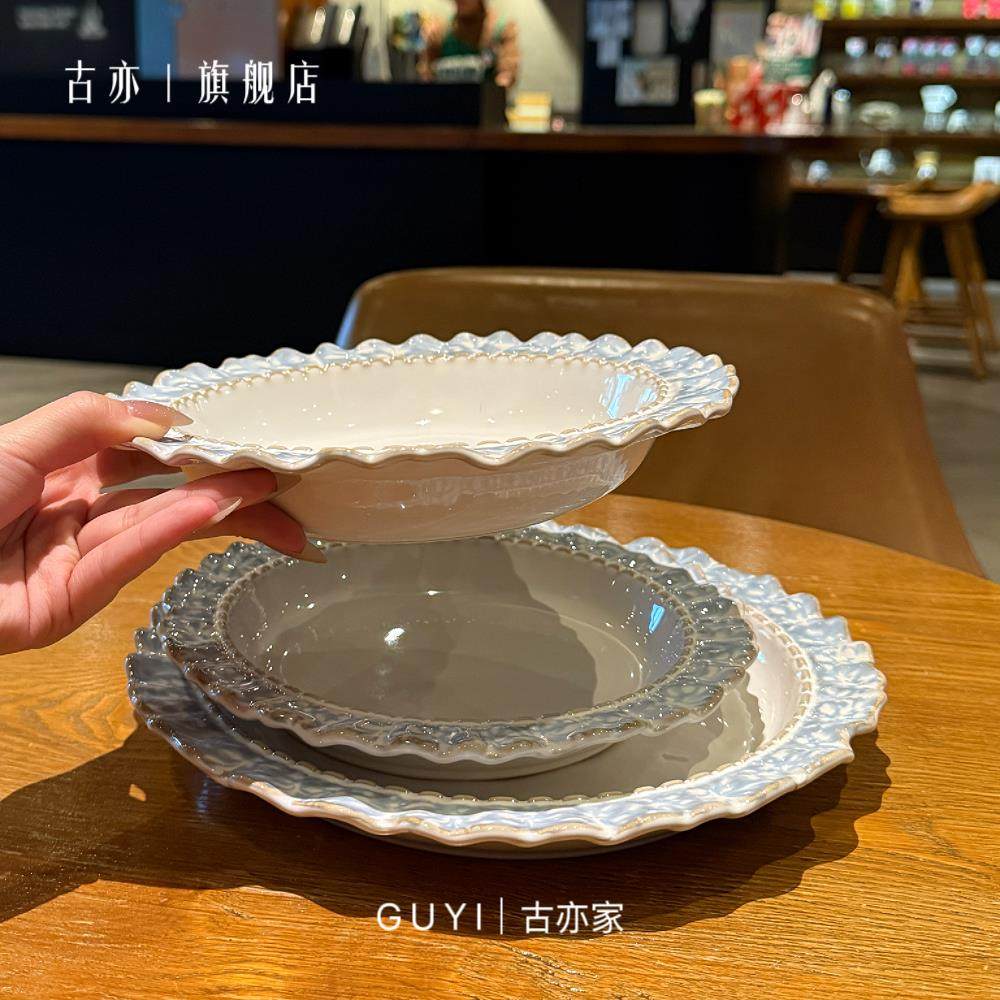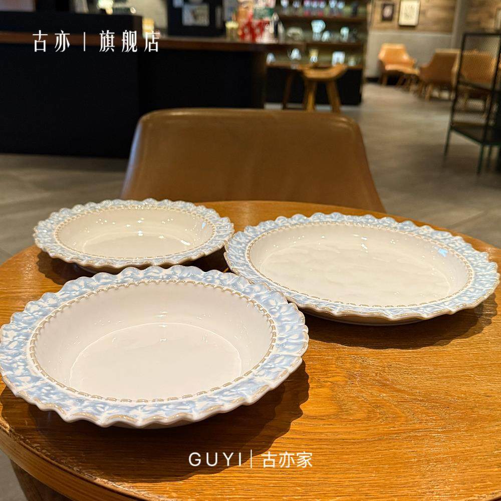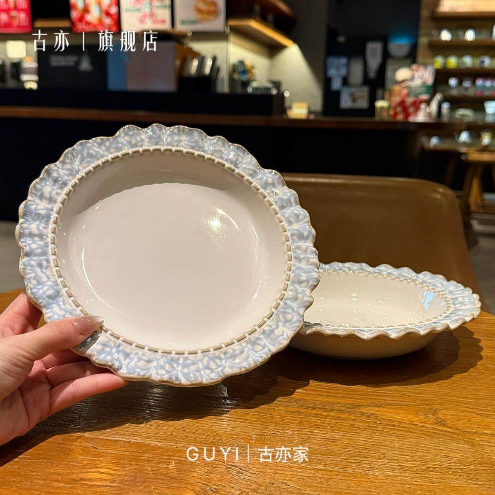 烟蓝被美晕袅!复古釉下彩陶瓷盘西餐盘甜品盘菜盘早餐盘汤盘