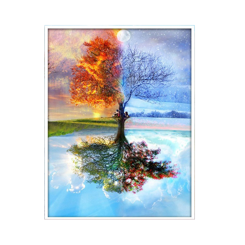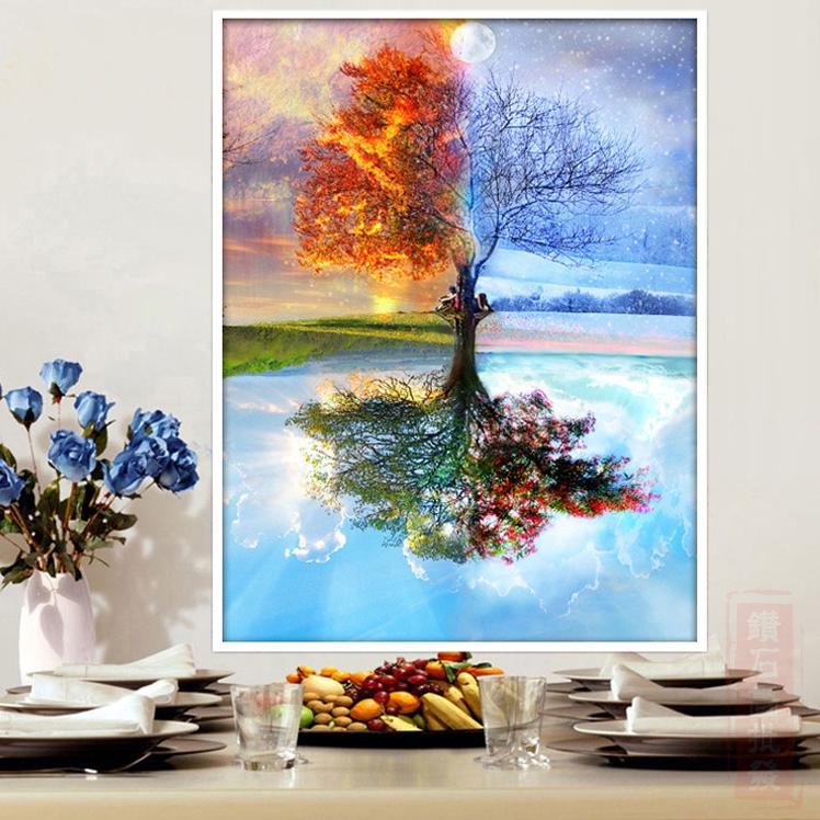 带框钻石画满钻方钻手工贴钻十字绣现代客厅卧室梦幻四季树发财树