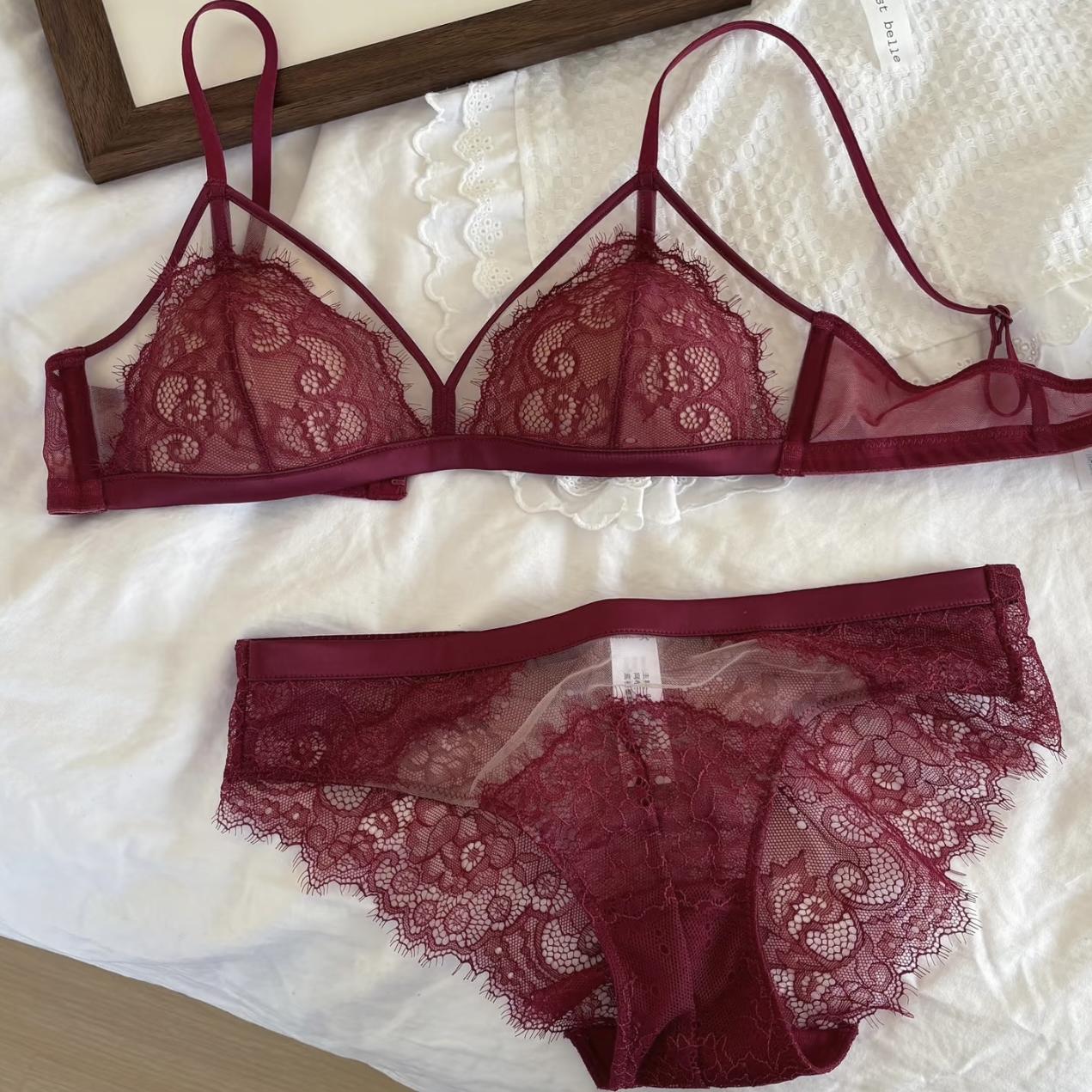 红色本命年内衣女小胸聚拢薄款无钢圈性感纯欲风新娘结婚文胸套装