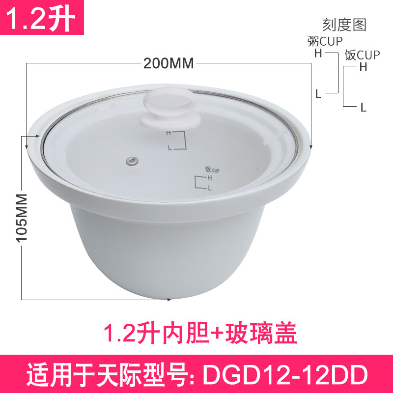 适配1.2升天际DGD12-12DD陶瓷煮粥锅电炖锅砂锅原装内胆盖子配件