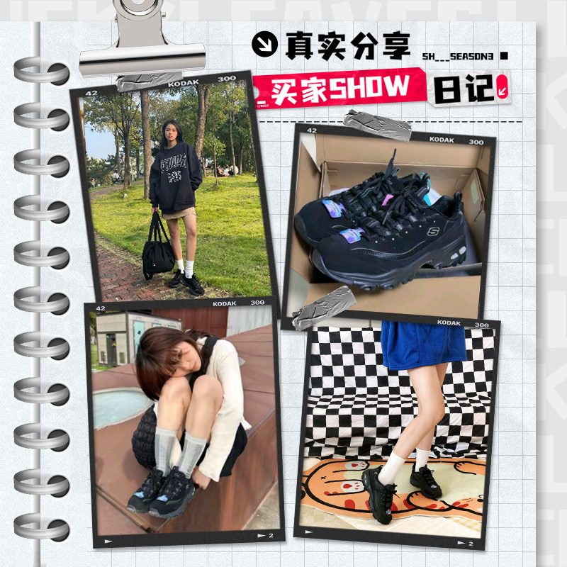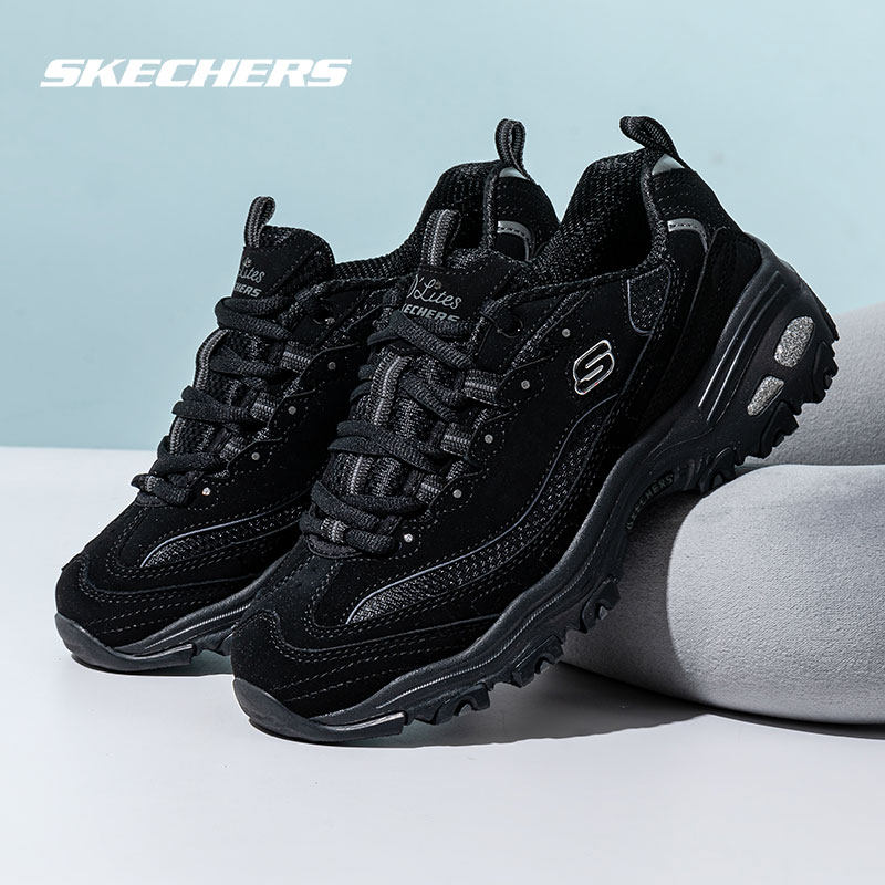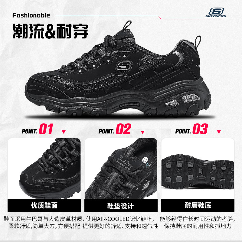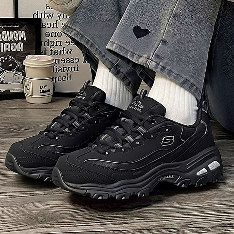 斯凯奇女鞋全黑色熊猫鞋官方缓震运动鞋冬季厚底老爹鞋透气休闲鞋