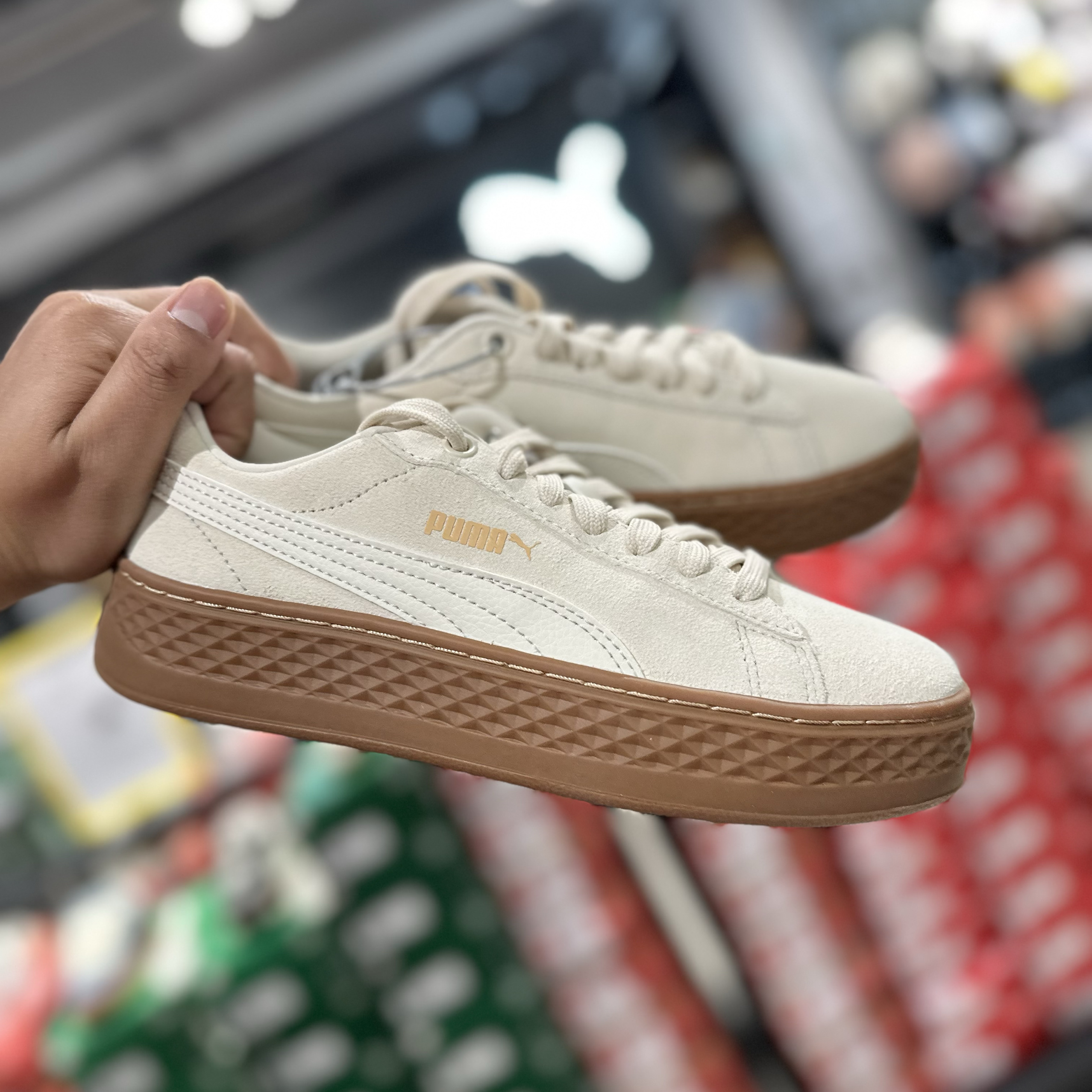 PUMA彪马 女款桦木色白棕蕾哈娜松糕鞋翻毛皮增高板休闲鞋 366488